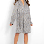 Niech świąteczne chwile będą jeszcze piękniejsze! Załóż wieczorem tą słodką, dwuczęściową piżamę Magic Moments, w której poczujesz się niesamowicie kobieco. Wykonana z uszlachetnionej bawełny jest miękka, delikatna i niesamowicie wygodna. Górę tworzy elastyczna, bawełniana bluzka z długim rękawem wykonana z bawełnianego prążka konfekcyjnego, dzięki temu poczujesz się w niej niesamowicie stylowo, zaś dół to zgrabne, długie spodnie w uroczy, wpadający w oko świąteczny wzór. Czerwono-szara kolorystyka idealnie komponuje się tu z delikatną bielą. W pasie czerwona, satynowa kokardka. Wysoka jakość. Produkt polskiej marki Momenti Per Me.