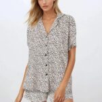 Skład: bluzka 92% bawełna, 8% elastan, spodnie 80% wiskoza, 17% poliester, 3% elastan.