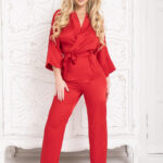 Komplet, który niesamowicie podkreśli kobiecość i rozbudzi zmysły. Lśniąca, lejąca satyna. Krój bardzo dobrze dopasowany. Talia podkreślona. Plecy mocno odsłonięte. Dość głęboki dekolt regulowany naramkami. Wszystko co najbardziej seksowne i eleganckie podane w małej pigułce.