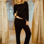 Dekolt bluzki zdobi koronka. Szorty stanowią natomiast kombinację tradycyjnych majteczek oraz spodenek: przód jest wykonany z koronki podszytej wiskozą w części majtkowej, tył natomiast to wiskoza, która miękko przylega do ciała, podkreślając krągłości pośladków.
