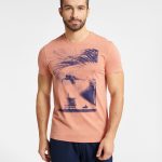 Modna dwuczęściowa piżama męska FEARLESS to wyjątkowa propozycja dla panów lubiących oryginalne wzory i podkreślające sylwetkę kroje. Komplet przyciąga uwagę koszulką w odcieniu brzoskwini, którą zdobi duży granatowy nadruk, nawiązujący do surfingu w egzotycznych zakątkach świata. Kolor grafiki harmonizuje z dolną częścią zestawu. Miękka, bawełniana piżama męska FEARLESS została wyposażona w wygodną gumkę w pasie, dzięki czemu doskonale dopasowuje się do sylwetki. Całość wykonano z wysokiej jakości stuprocentowej bawełny, która zapewnia wygodę noszenia i komfortowy sen.