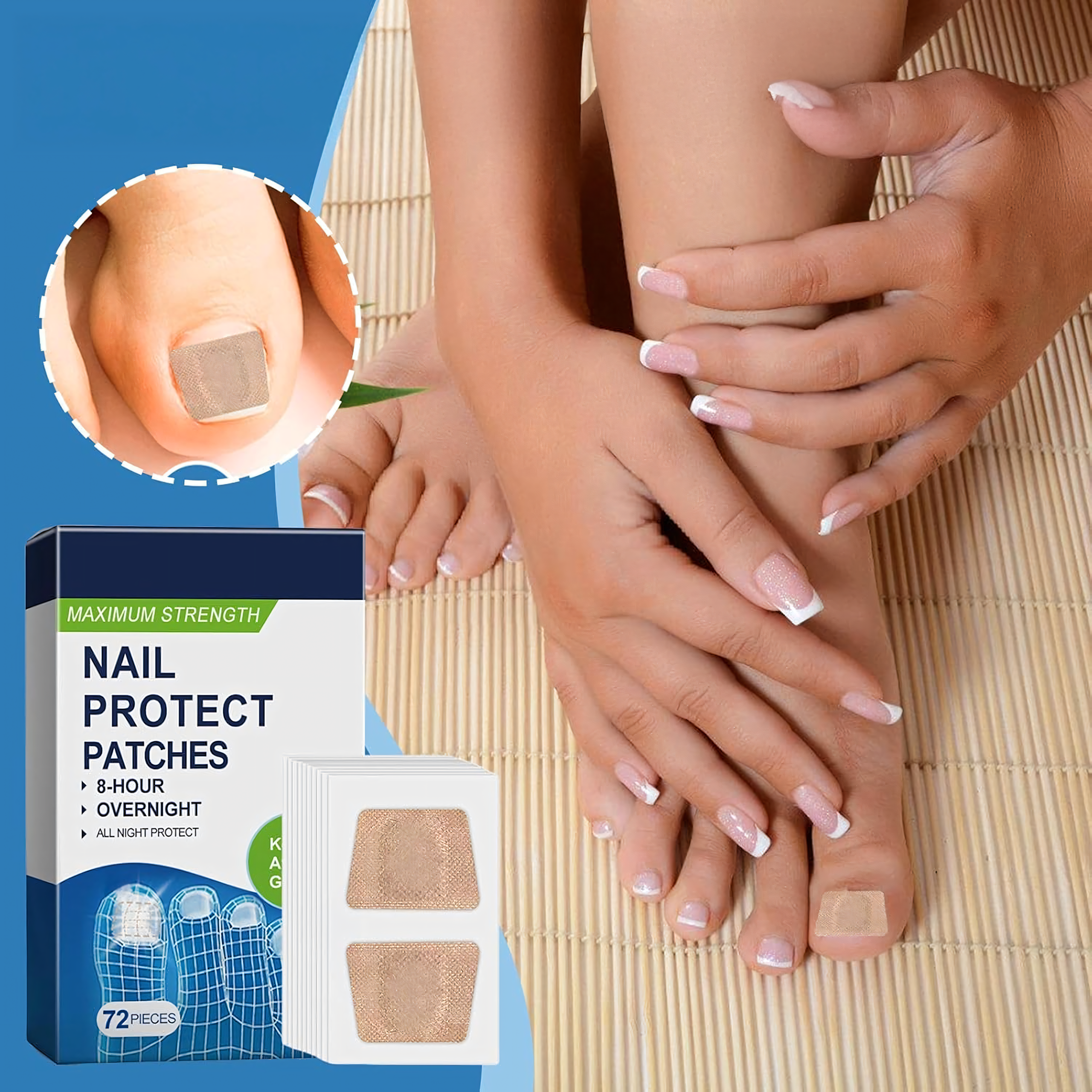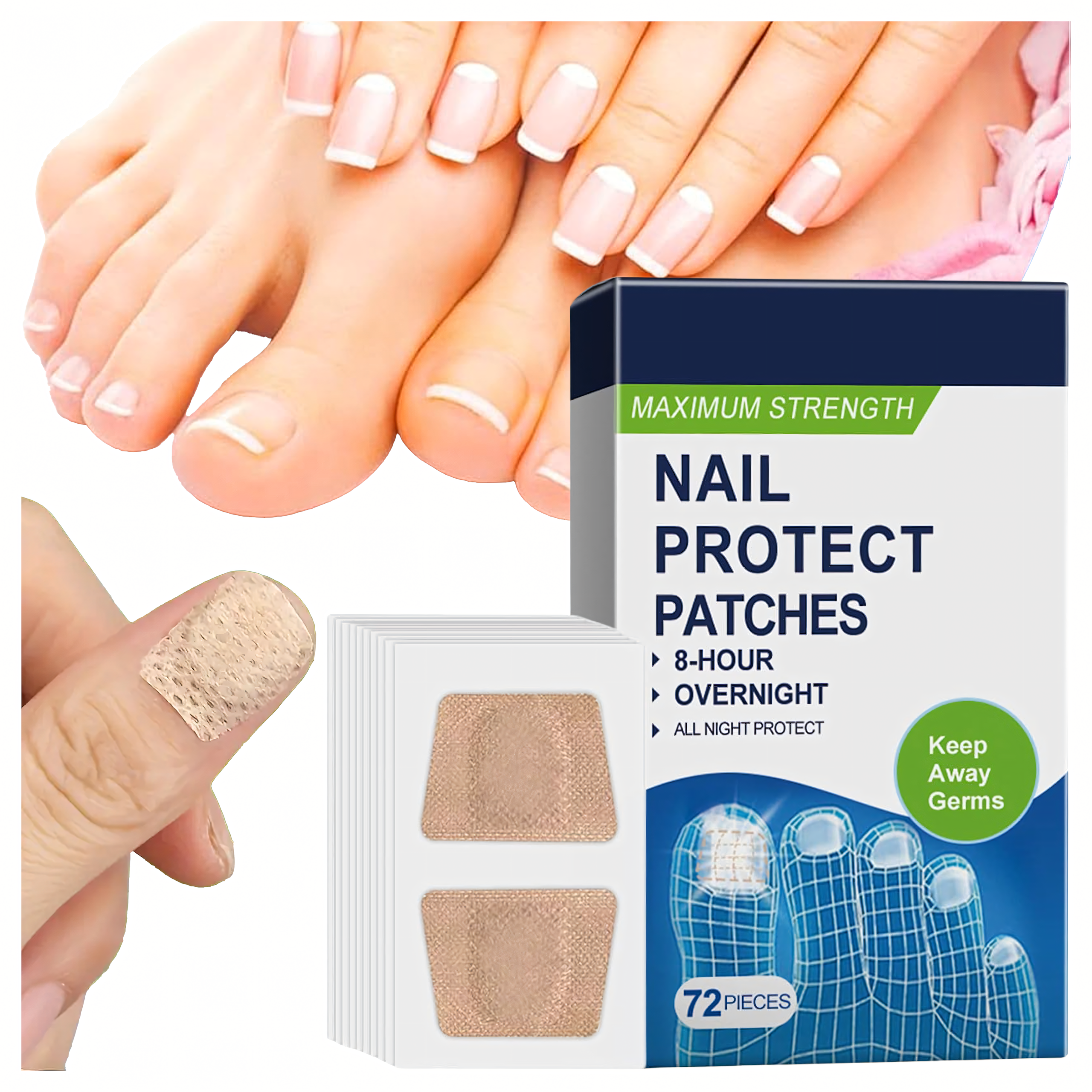Plastry na grzybicę paznokci (72 szt.) – regenerują, wzmacniają i nawilżają płytkę, redukując przebarwienia, pęknięcia i łuszczenie. Dzięki oddychającej i cienkiej formule działają przez 8 godzin w nocy, wspierając zdrowy i naturalny wzrost paznokci. Idealne do wygodnego stosowania w domu.