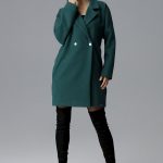 Luźny w formie płaszcz z kimonowymi rękawami świetny do nowoczesnych stylizacji. Model dwurzędowy zapinany na ozdobne napy z kieszeniami. Uszyty z pięknej tkaniny w modnych kolorach. Kobiecy i ponadczasowy.