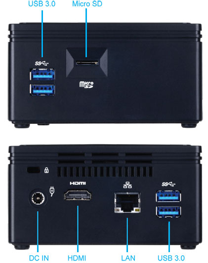 | Porty | 1x RJ-45, 4x USB 3.0, 1x D-Sub, 1x HDMI, 1x DC-In, 1x micro SD card slot, 1x Kensington lock slot, audio |