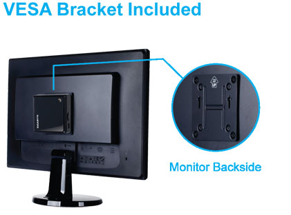 Komputer BRIX może zostać z łatwością zamontowany z tyłu obudowy monitora, dzięki dołączonemu systemowi montażowemu VESA. W ten sposób oszczędzamy znaczną ilość miejsca na biurku.