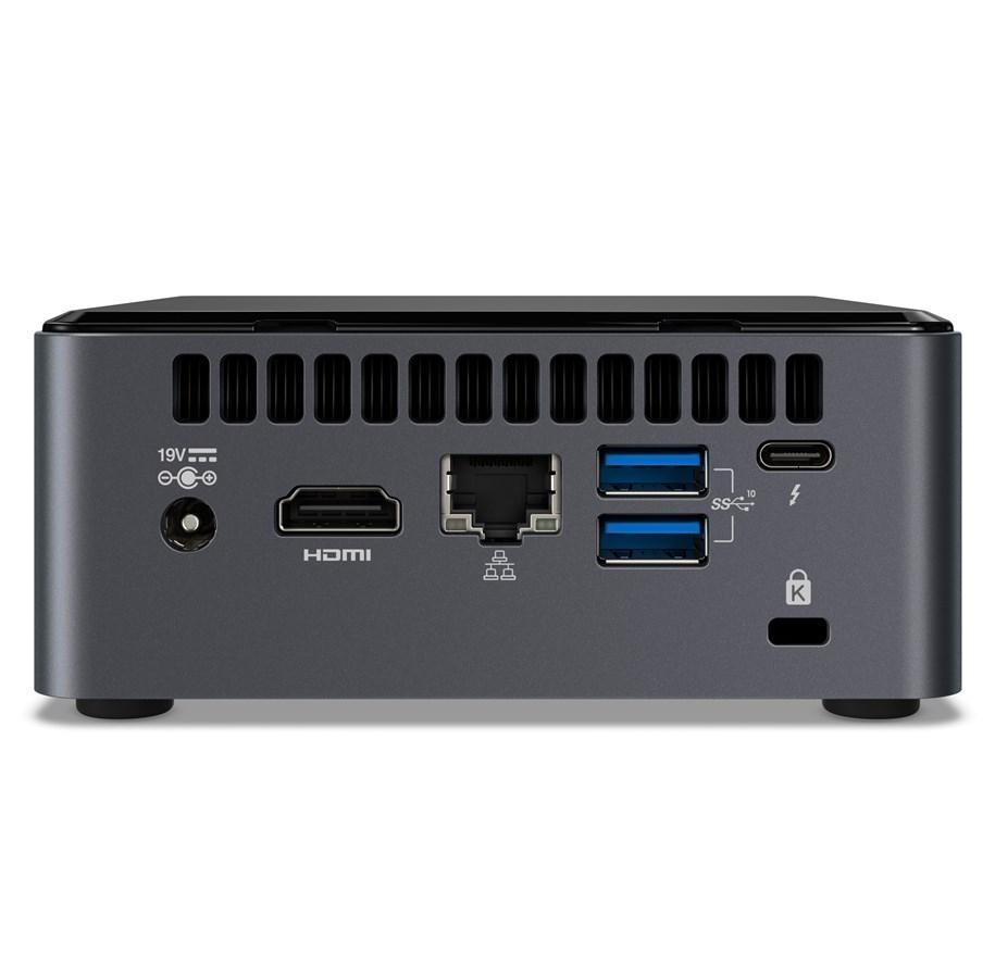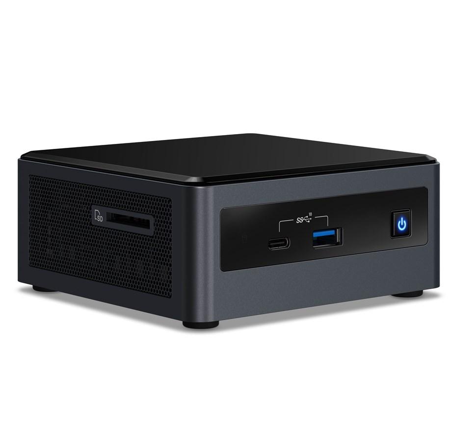 Intel® NUC to komputer o małych rozmiarach i niewielkich wymaganiach. Jego nazwa jest skrótem od Next Unit of Computing (następna jednostka obliczeniowa). Intel® NUC (wymawiane jak angielskie „luck” lub „truck”) mieści moc pełnowymiarowego komputera PC w dłoni. Minikomputer Intel® NUC mieści procesor Intel® Core™ i3-10110U, ze zintegrowaną kartą graficzną Intel® UHD Graphics, dwa gniazda pamięci RAM i miejsce na dysk M.2 i SATA o formacie 2.5″, porównywalne z tymi w najnowszych pełnowymiarowych komputerach stacjonarnych, i to w najmniejszej obudowie, jaką tylko można zaprojektować. Minikomputery Intel® NUC mają lepszą łączność niż wiele obecnie dostępnych na rynku laptopów. Liczne porty USB na przednim i tylnym panelu, HDMI, DisplayPort, technologia Thunderbolt™ 3, oraz 2,5 GbE Ethernet i Wi-Fi 6 umożliwiają pełną swobodę.