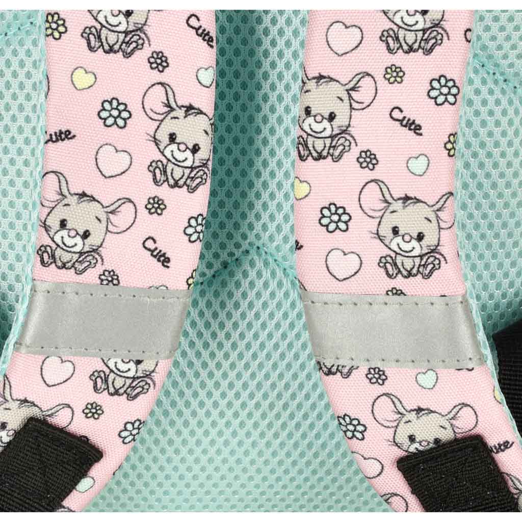 szelkach i bokach plecaka jest print z myszkamiprzód