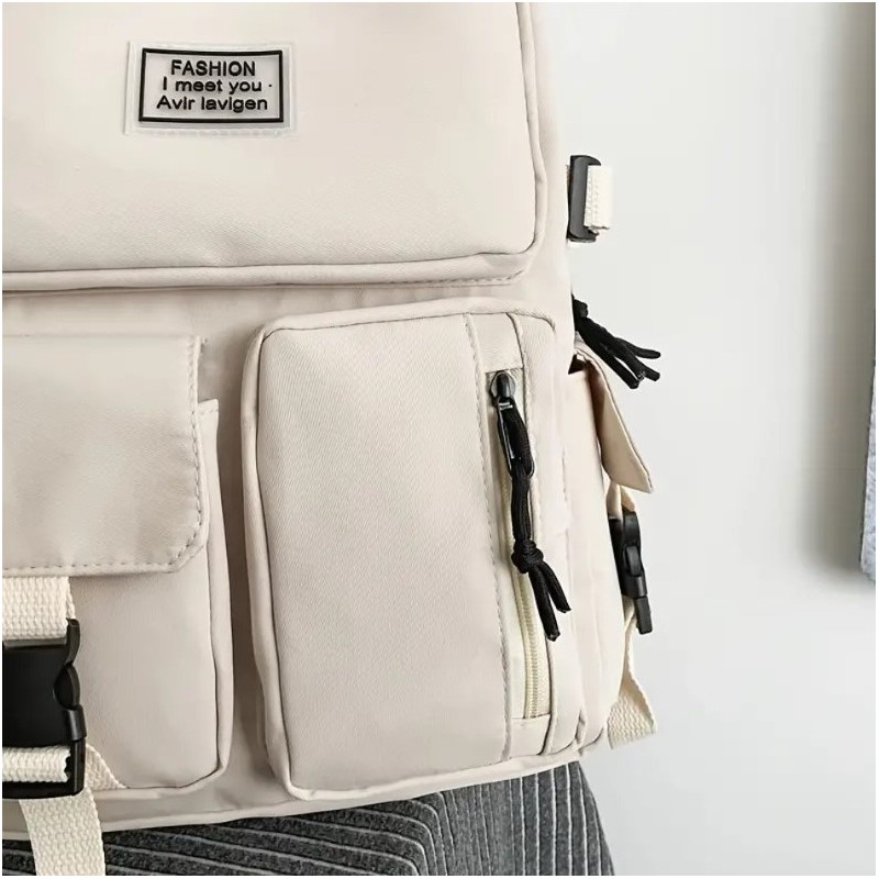 Plecak sportowy szkolny uniwersalny kieszonki kremowy PL164K