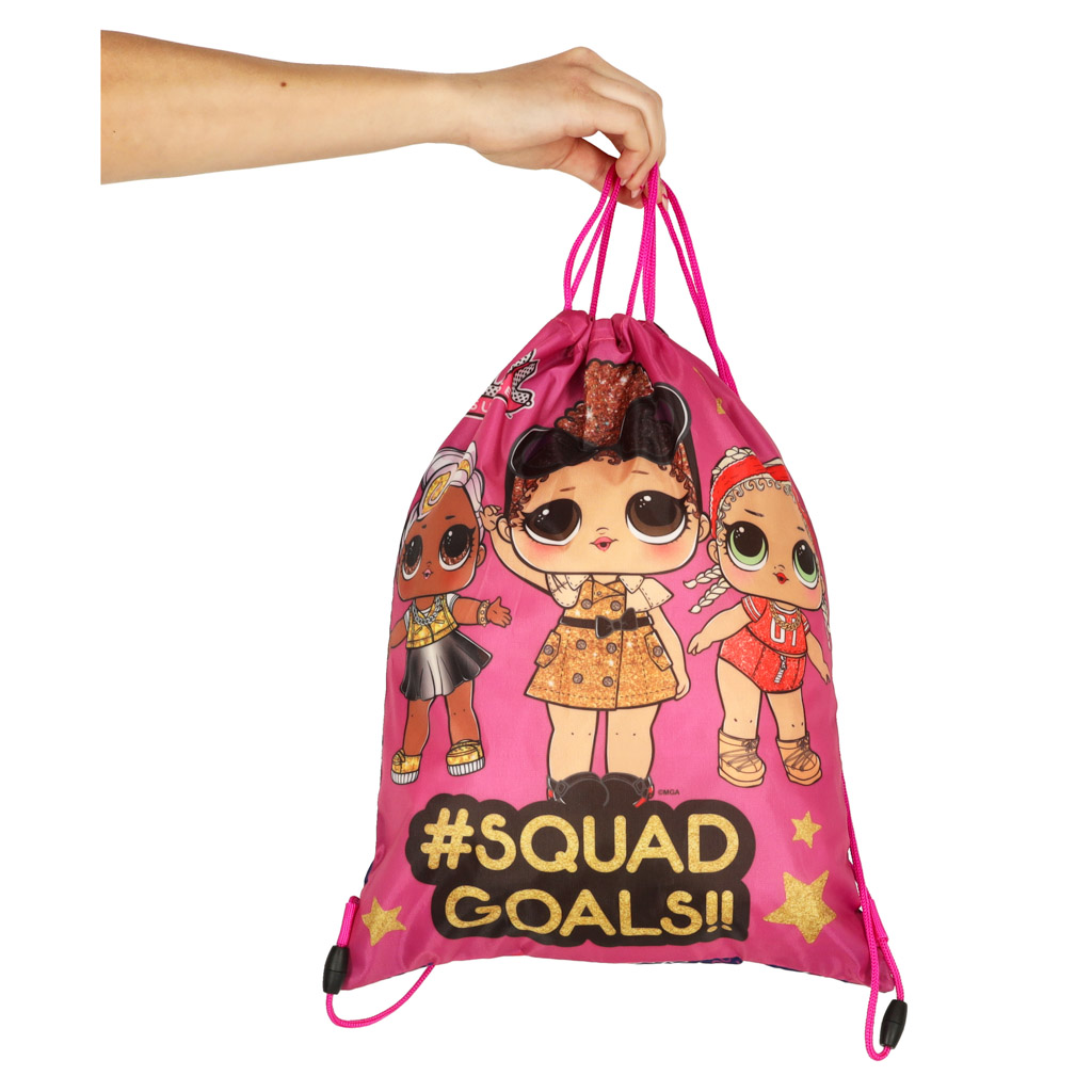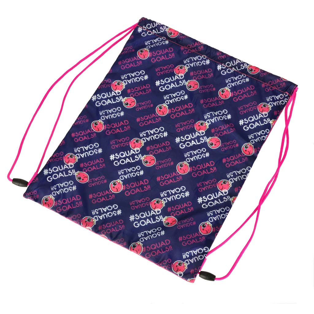 Kolorowy worek na sznurkach Bambino. Grafika z uroczymi lalkami spodoba się niejednemu maluchowi. Worko-plecak doskonale nada się do spakowania butów na zmianę lub stroju gimnastycznego. Wymiary: 34 cm x 43 cm.