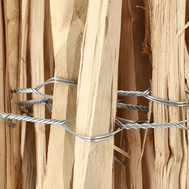 Minimalistyczne ogrodzenie z naturalnego drewna i mocnych drutów.