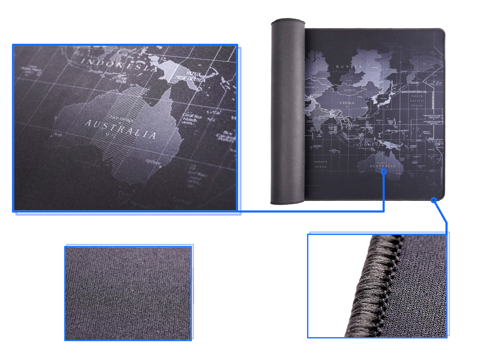 Duża mata pod mysz. Antypoślizgowy spód pokryty jest warstwą naturalnego kauczuku. Gładka, materiałowa powierzchnia odporna na zabrudzenia. Brzegi maty są obszyte, co zapobiega jej strzępieniu.