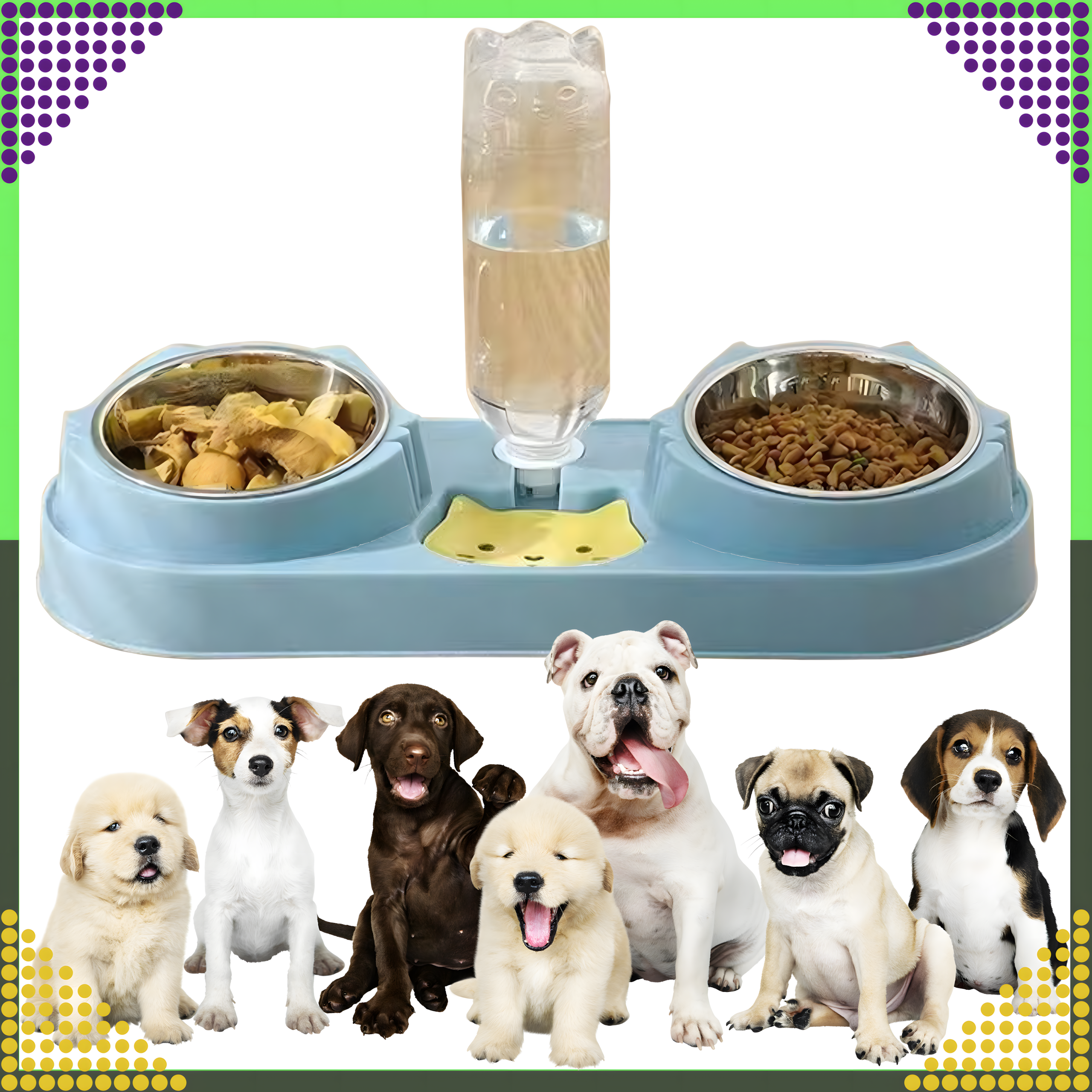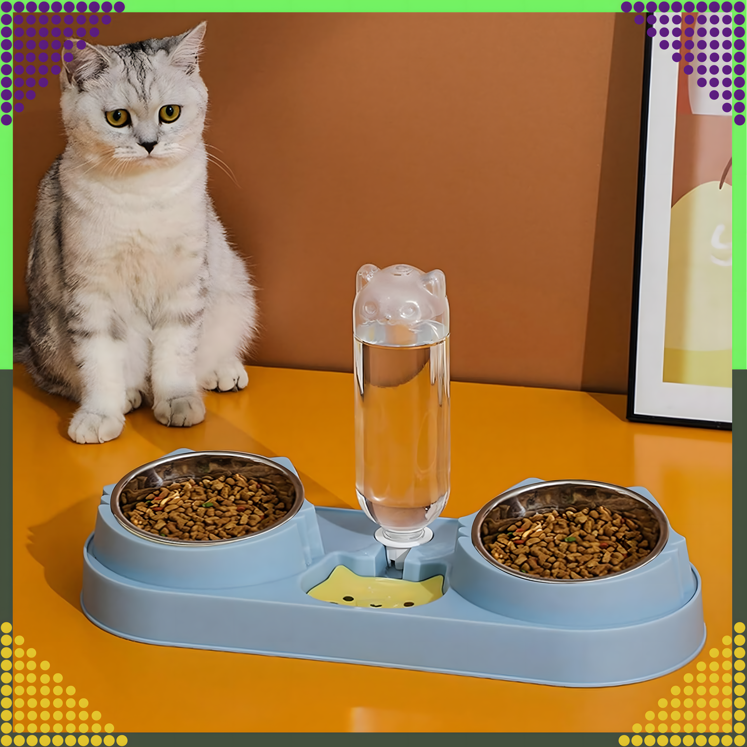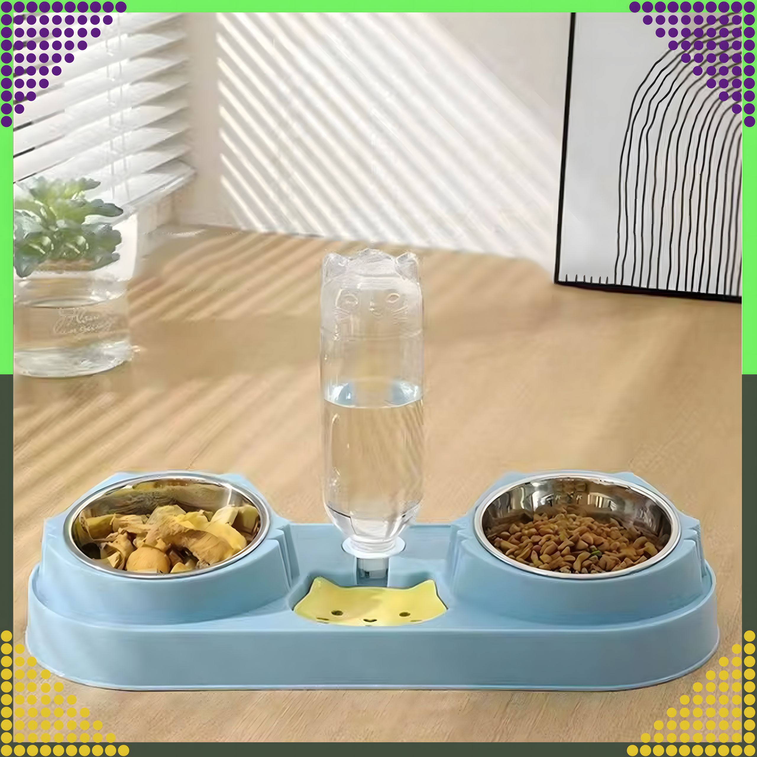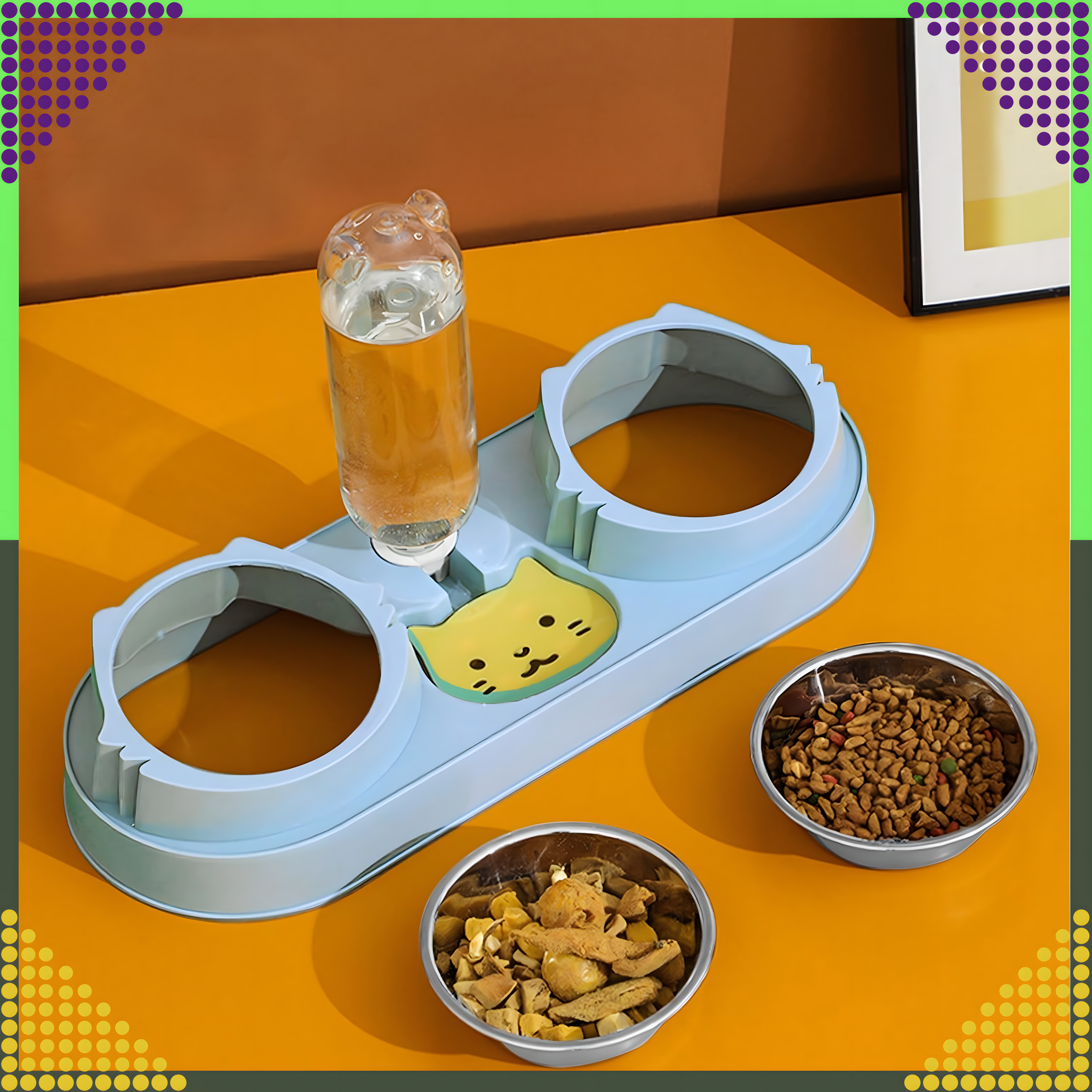 ⭐ PODWÓJNA MISKA + AUTOMATYCZNE POIDŁO NA WODĘ DLA PSA LUB KOTA NIEBIESKA ⭐