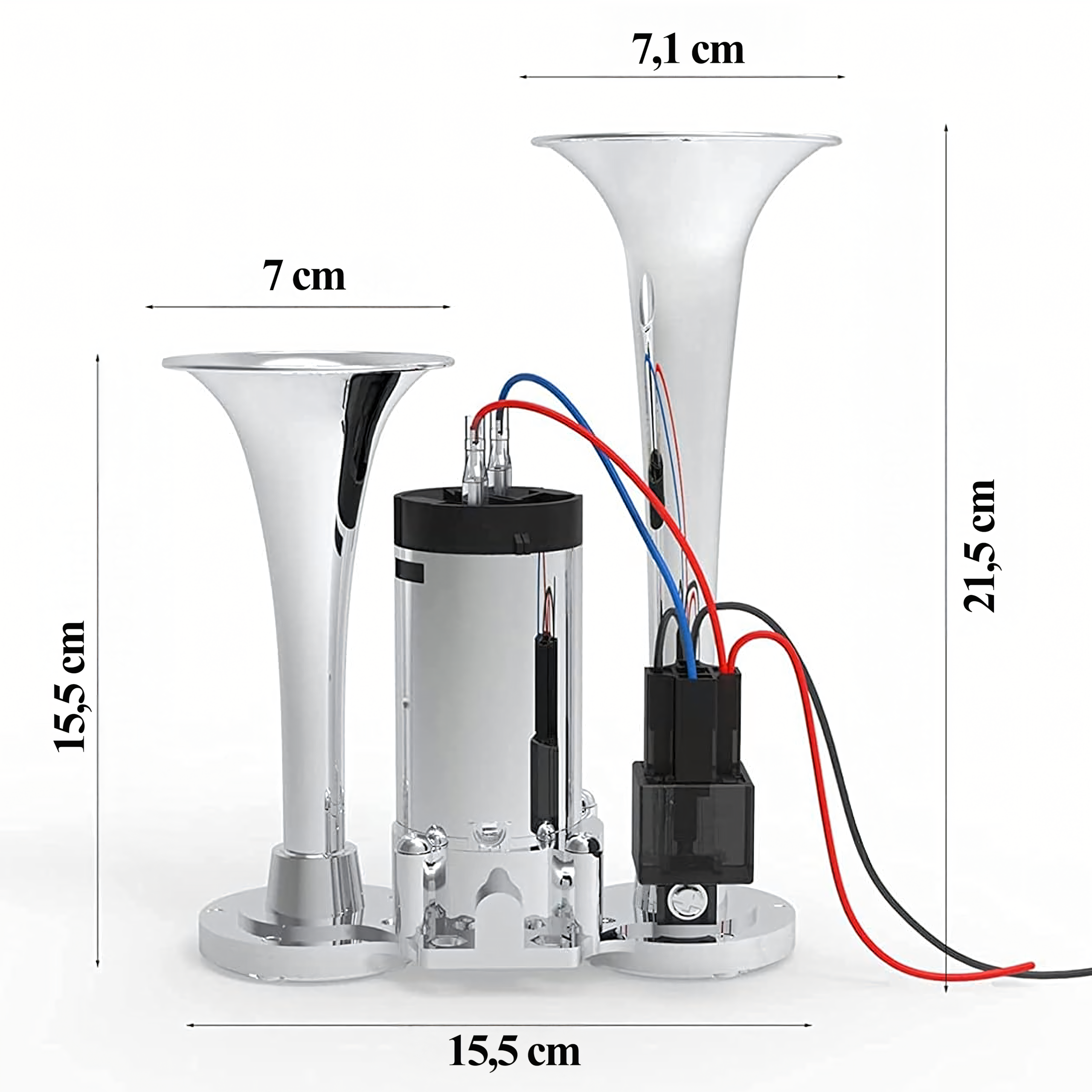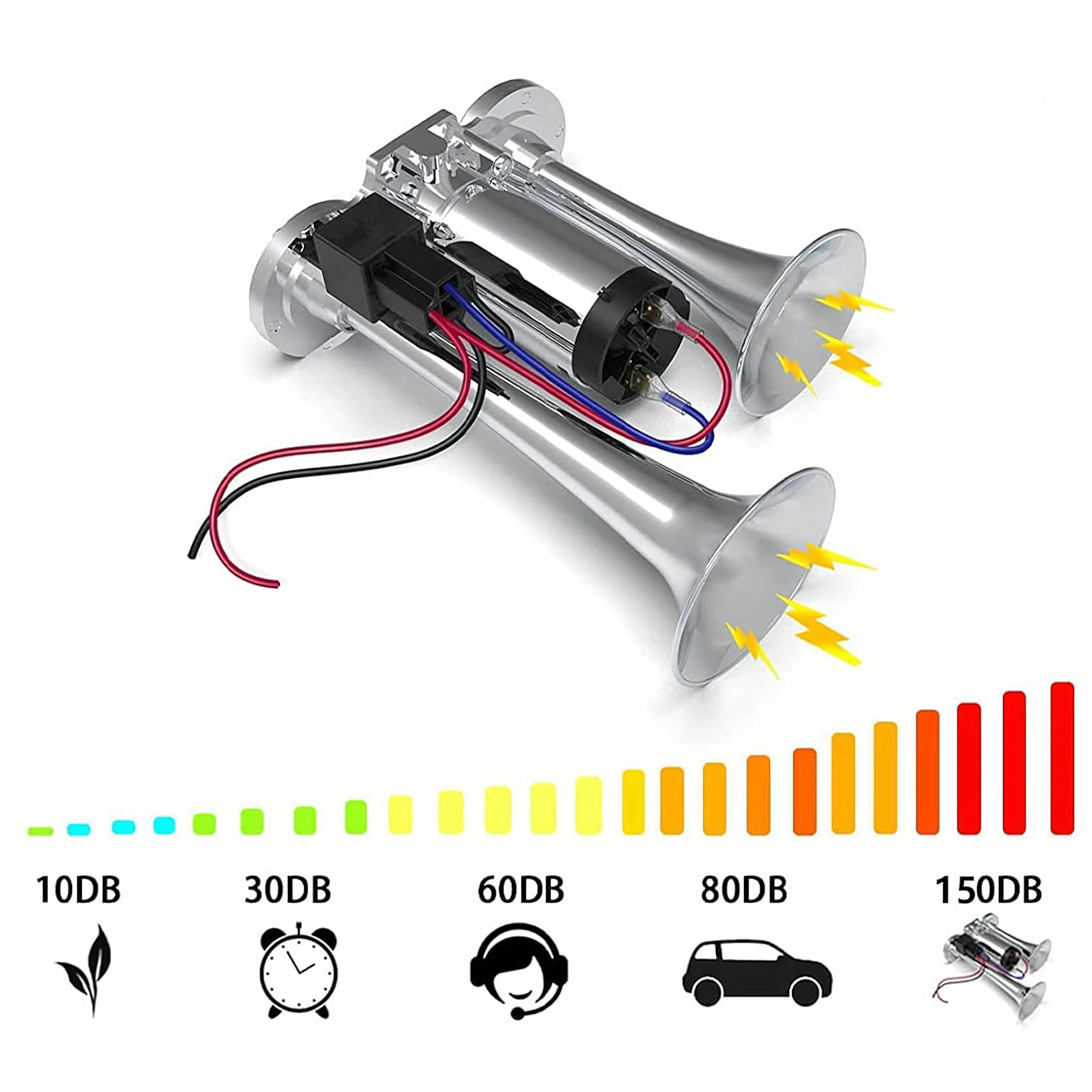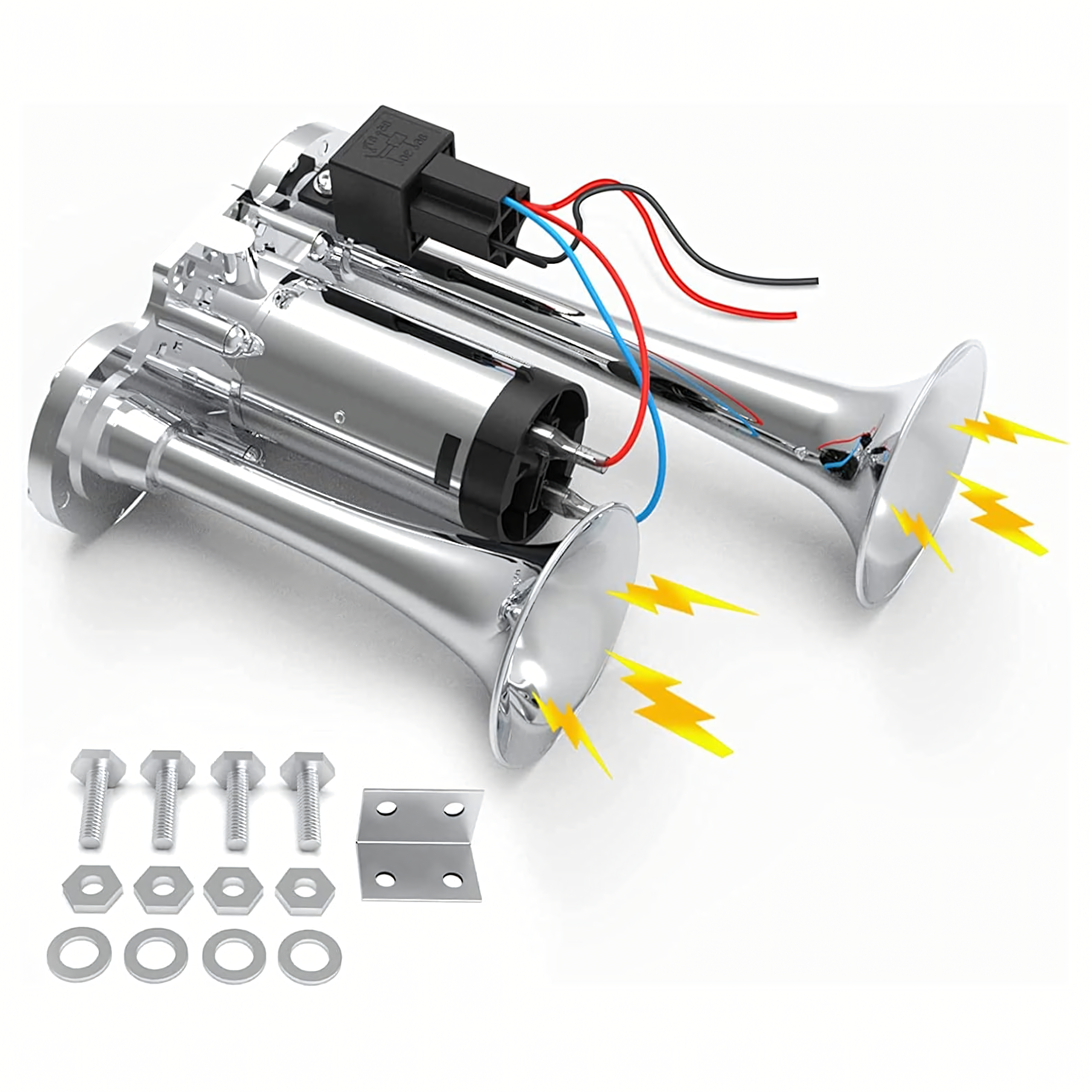 Podwójny Klakson Elektryczny Trąbka Fanfara z Kompresorem 12V 600 dB