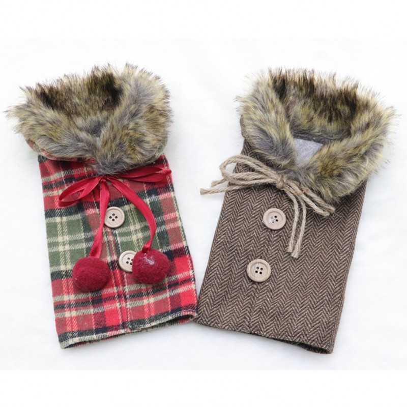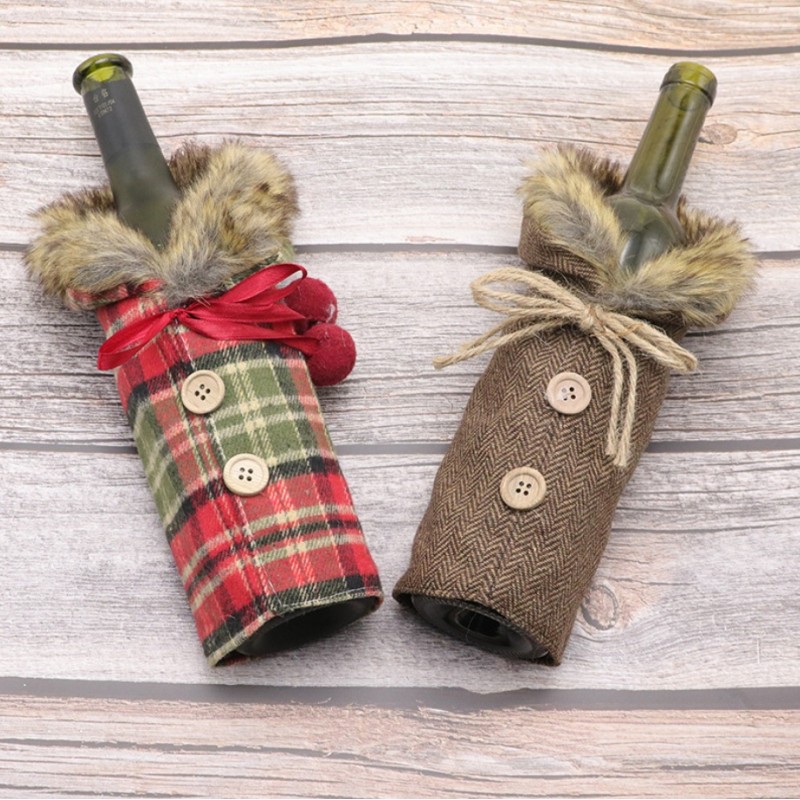 Pokrowiec na butelkę, wino Boże Narodzenie czerwono – zielona krata KSN11