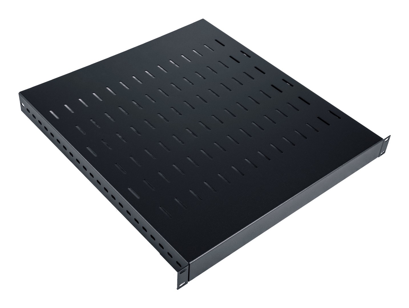 Półka regulowana 19″, 1U, gł.500-900 mm, nośność 100kg, mocowanie w 4 punktach, czarny, śruby w kpl.