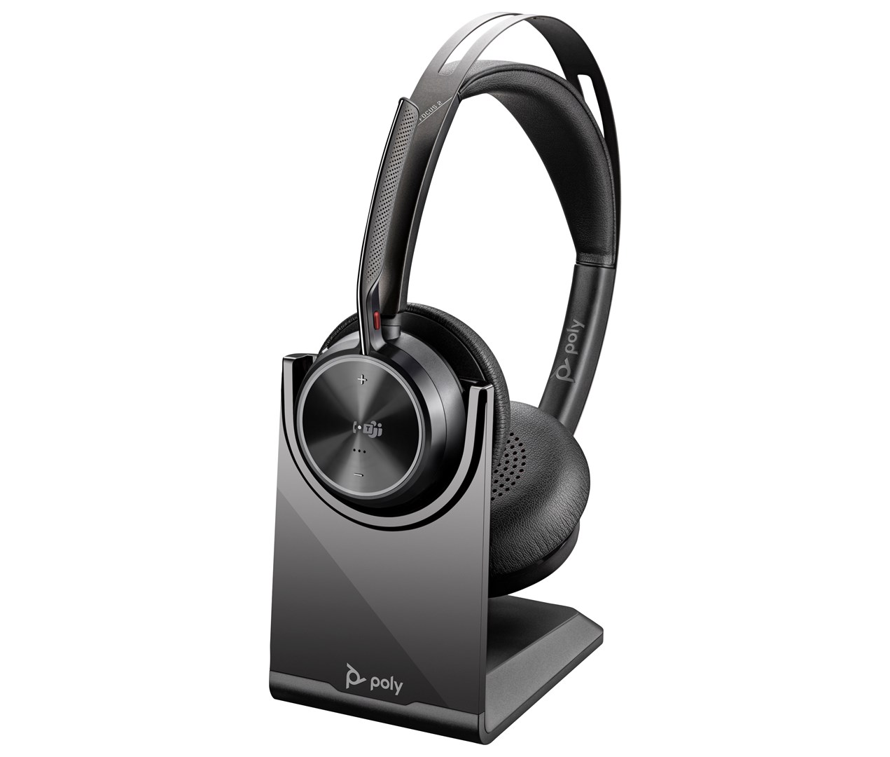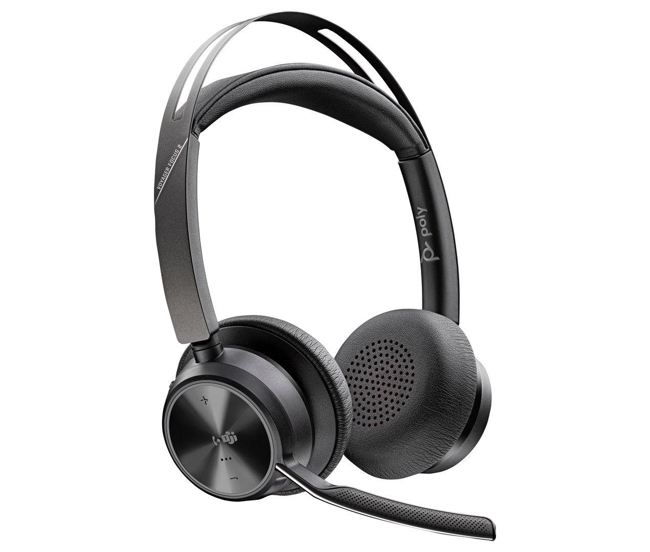 POLY Zestaw słuchawkowy Voyager Focus 2 z certyfikatem Microsoft Teams USB-C-C + przejściówka USB-C/A + podstawka ładująca