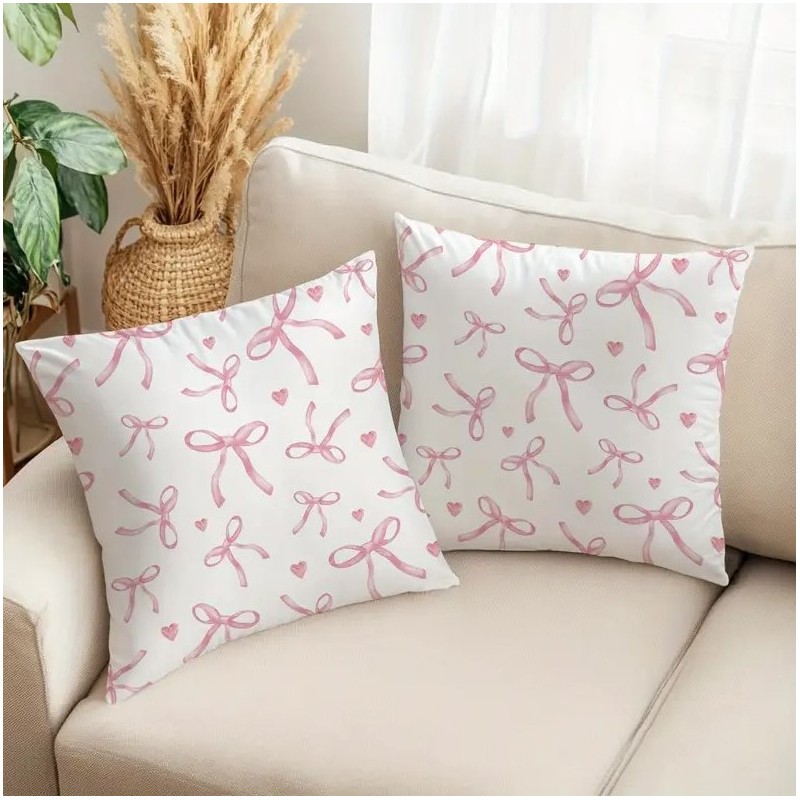 Poszewka na poduszkę 45 x 45 cm biała, KOKARDKI różowe POD228