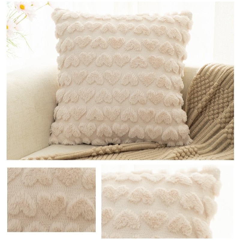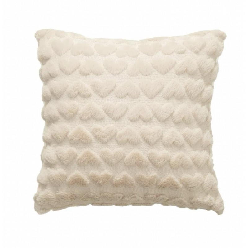 Poszewka na poduszkę 45 x 45 cm tekstura puchata SERCA Beż POD149