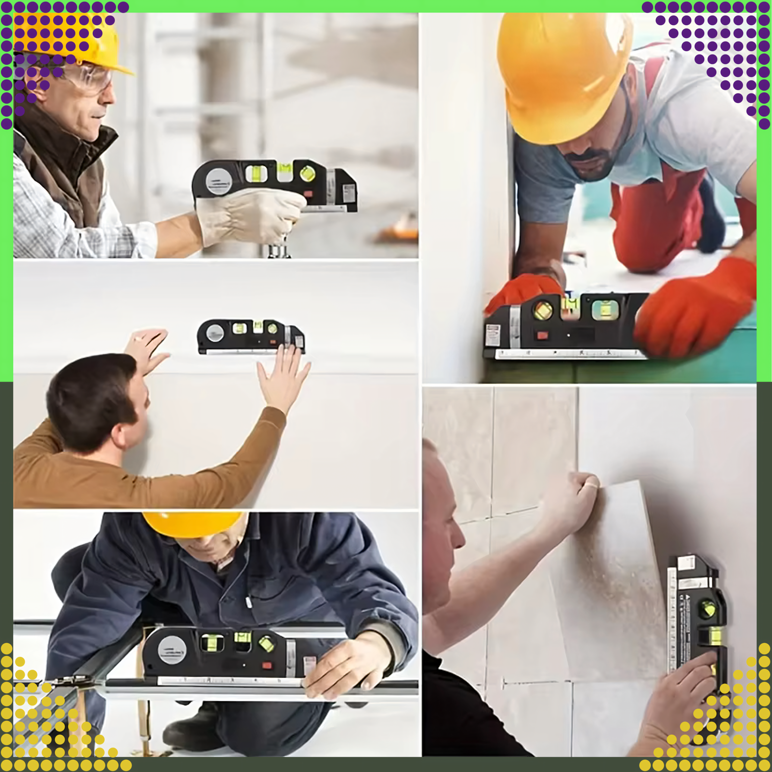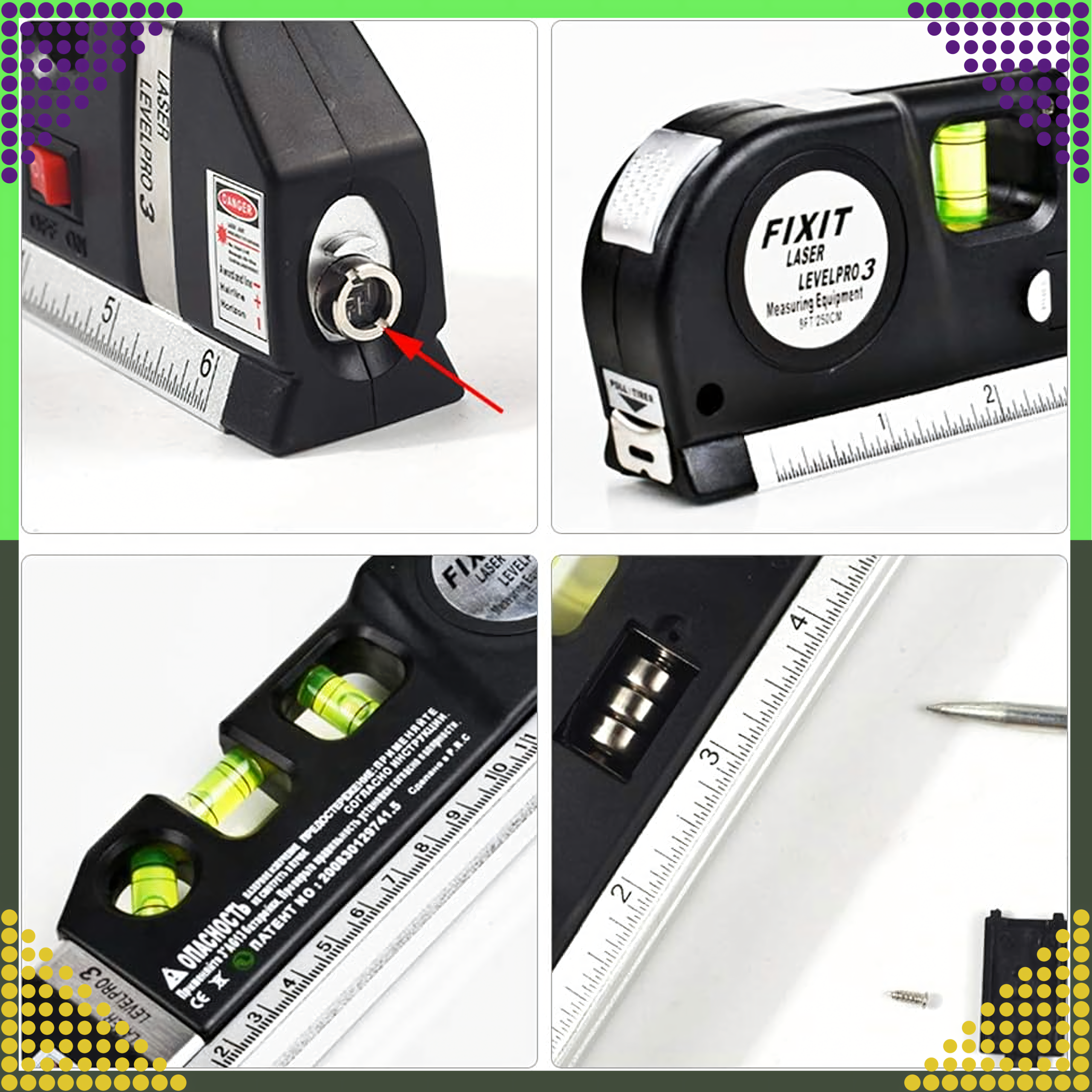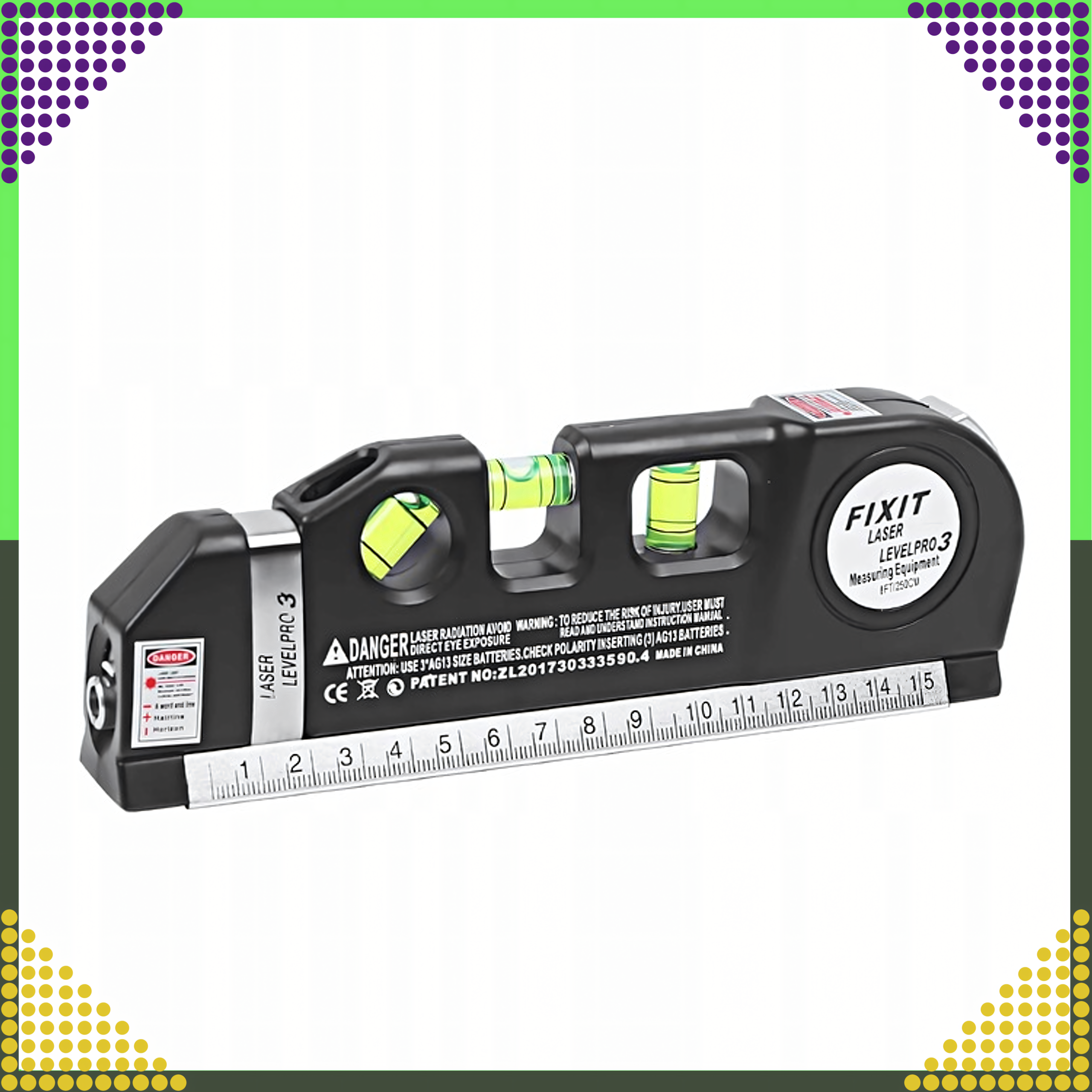Wielofunkcyjna poziomica laserowa z wbudowaną miarką 2,5 m i trzema libelkami (pion, poziom, 45°). Umożliwia precyzyjne pomiary i wyrównania. Lekka (175 g) i kompaktowa (18 × 6 × 3 cm), idealna do prac budowlanych, remontowych i majsterkowania. Zasilana bateriami LR44 (w zestawie) 🔋.