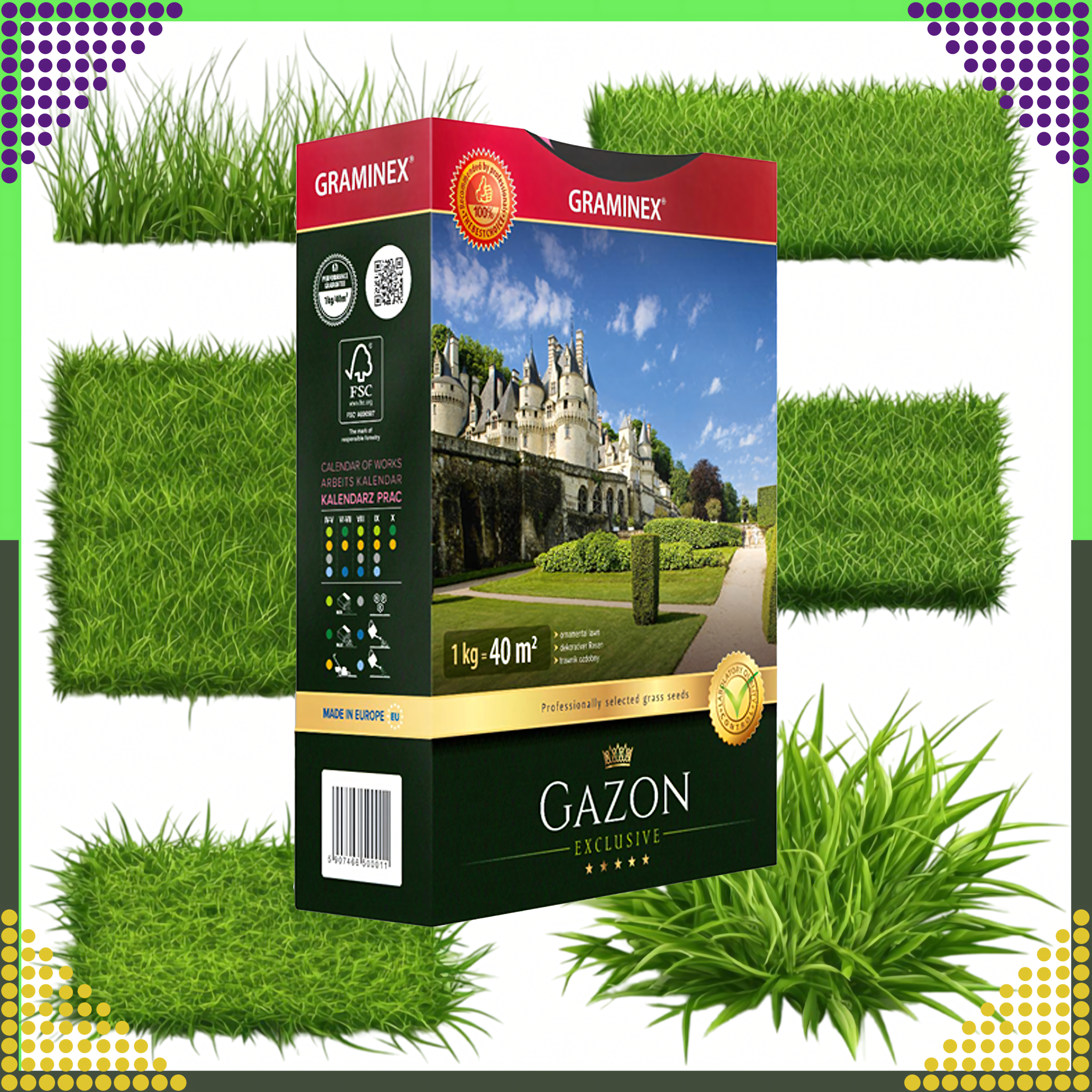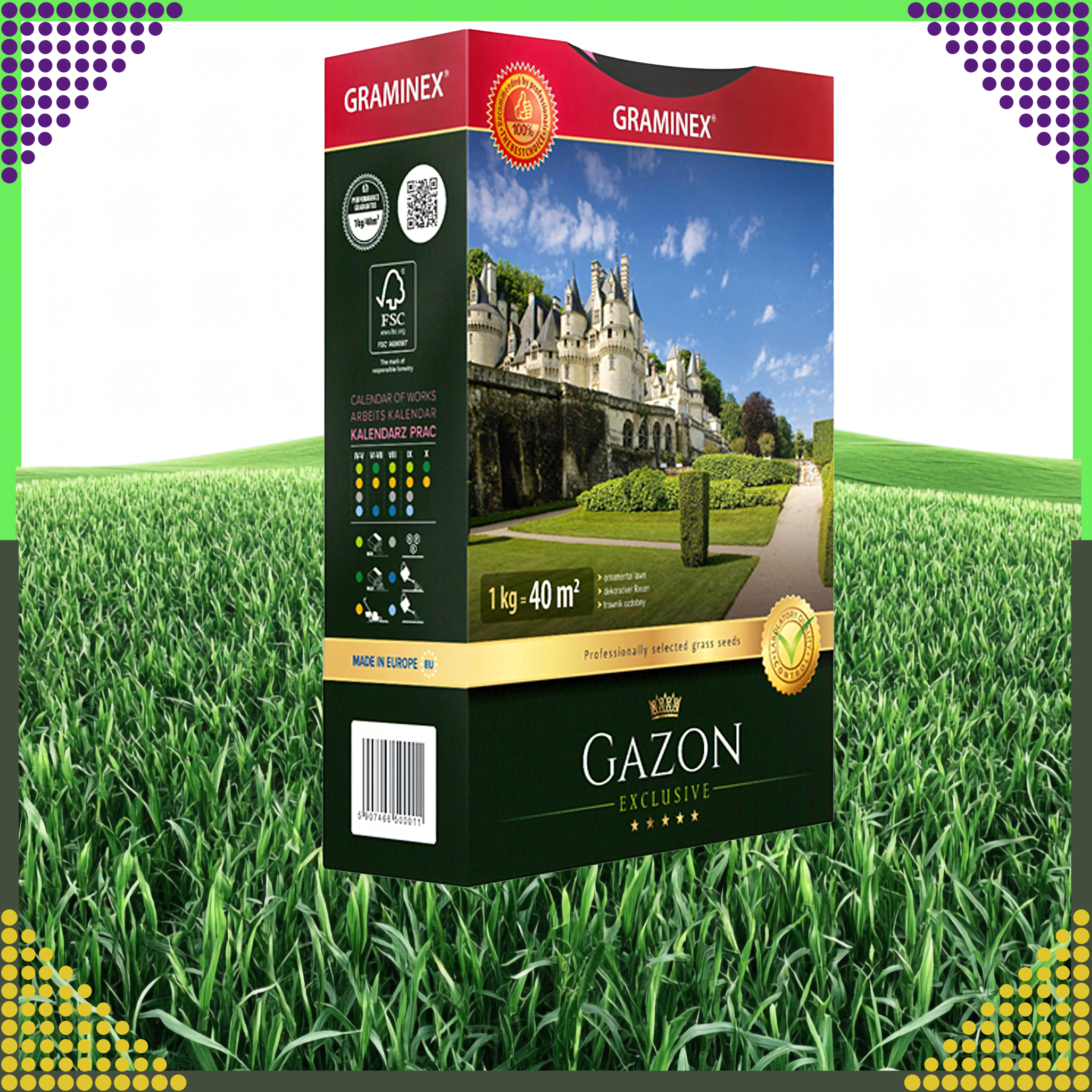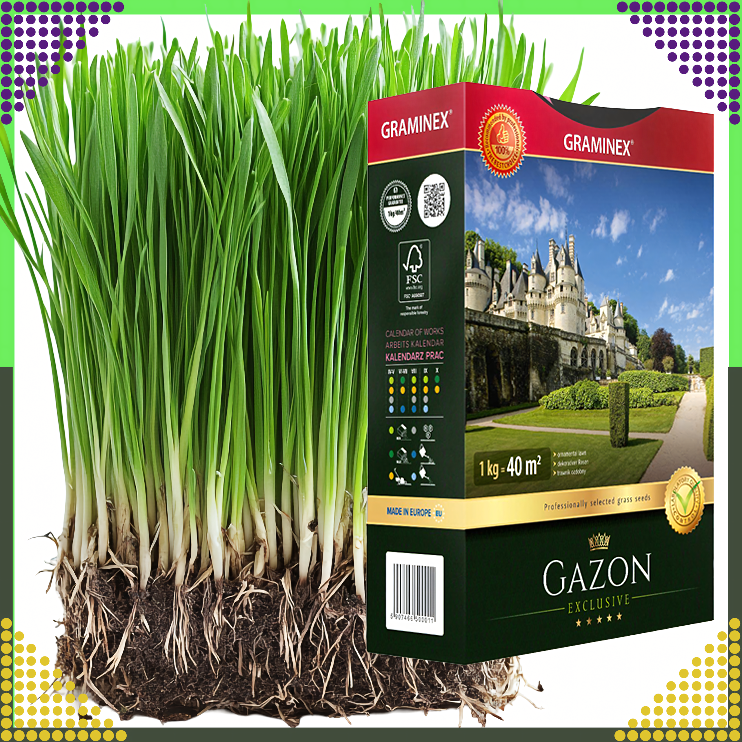 Premium Trawa Nasiona Traw do Zakładania Trawników na Dosiewkę GAZON 1kg 40m
