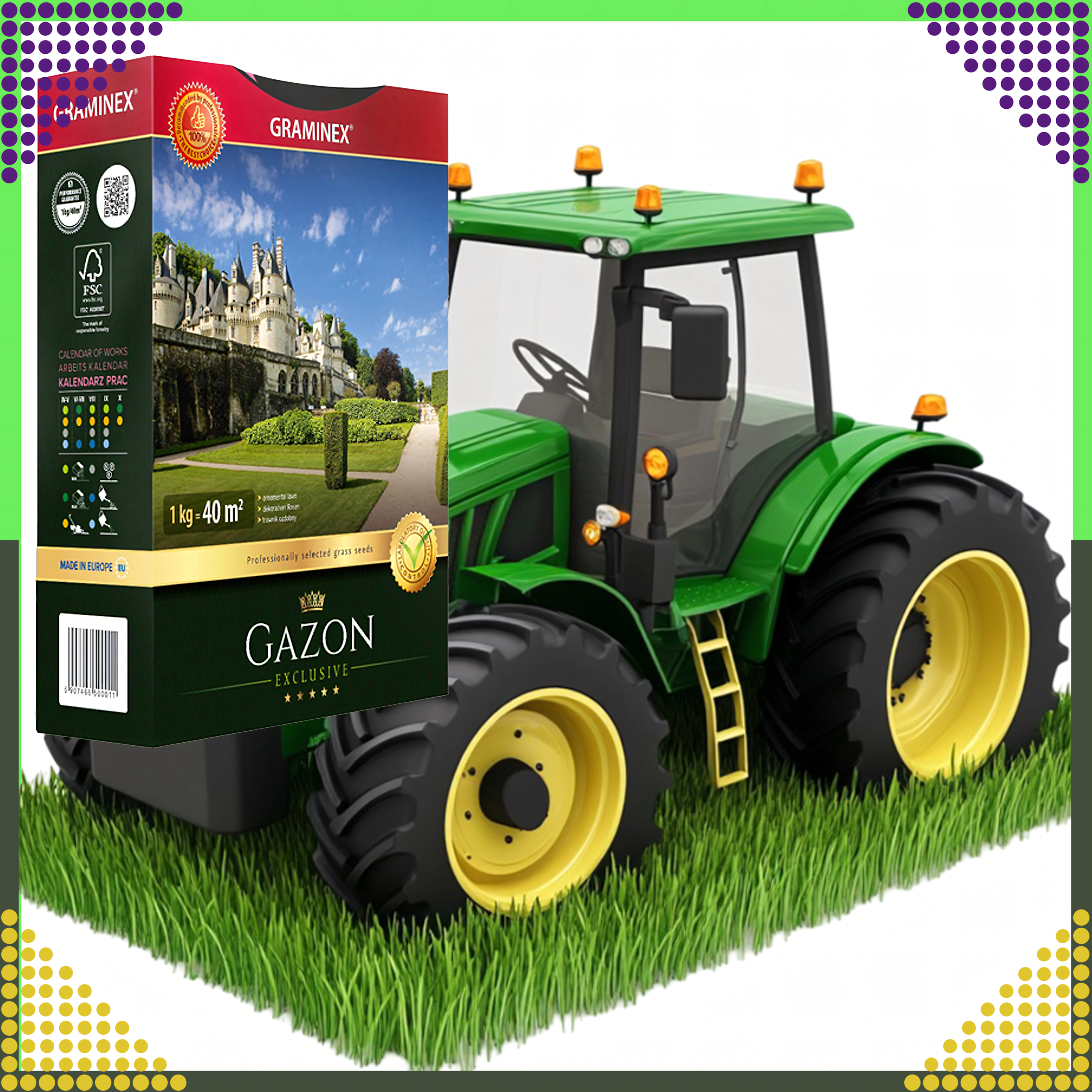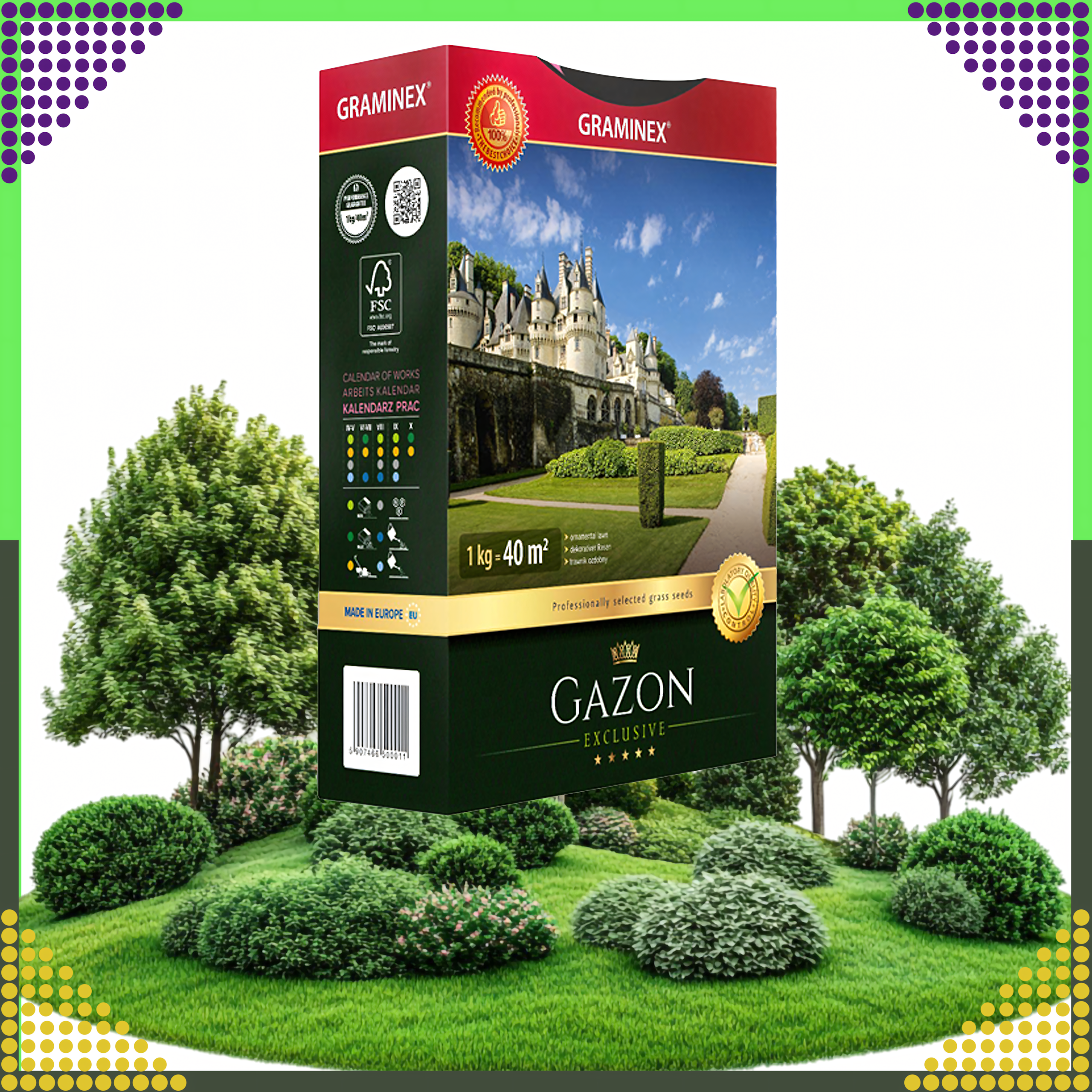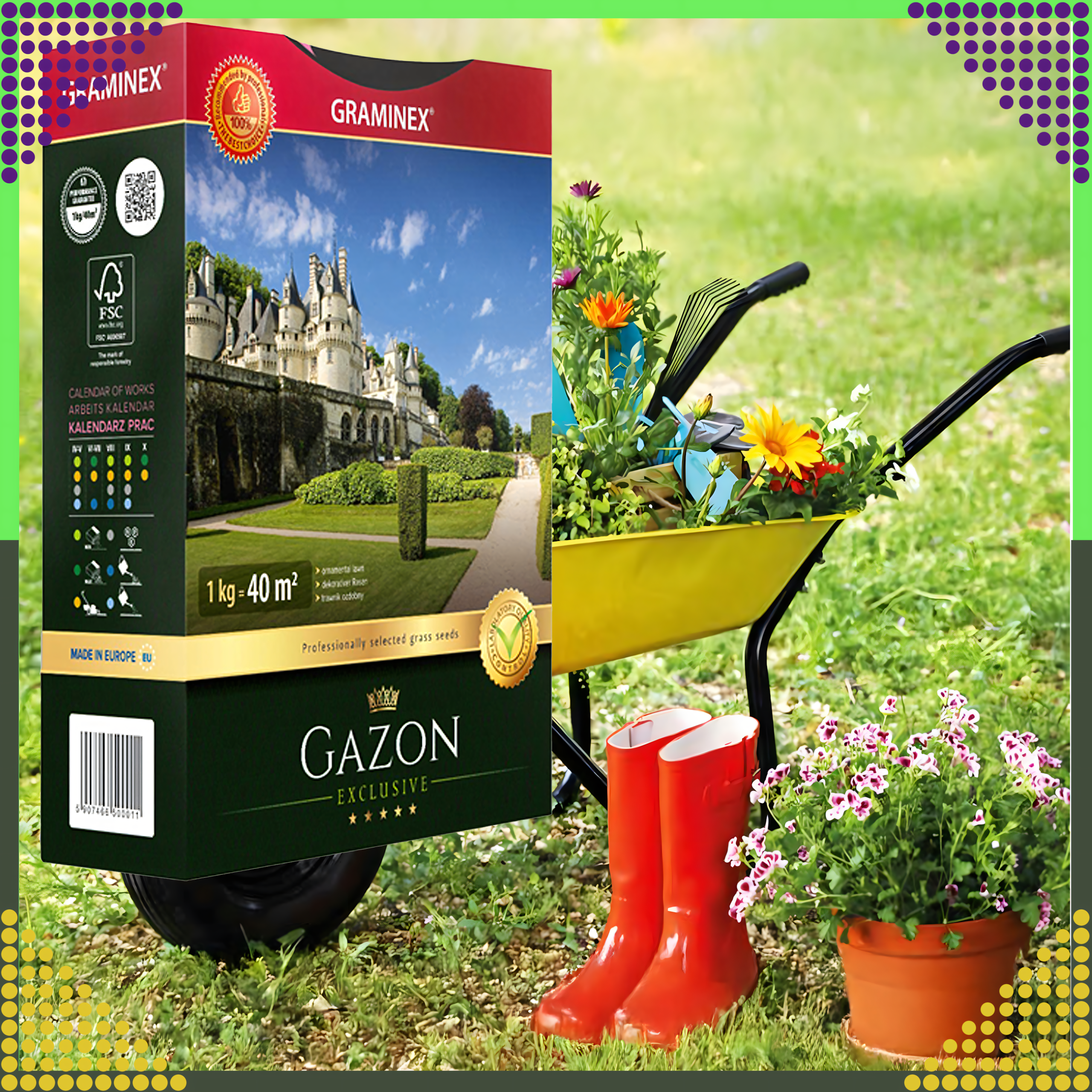 Premium Trawa Nasiona Traw do Zakładania Trawników na Dosiewkę GAZON 1kg 40m