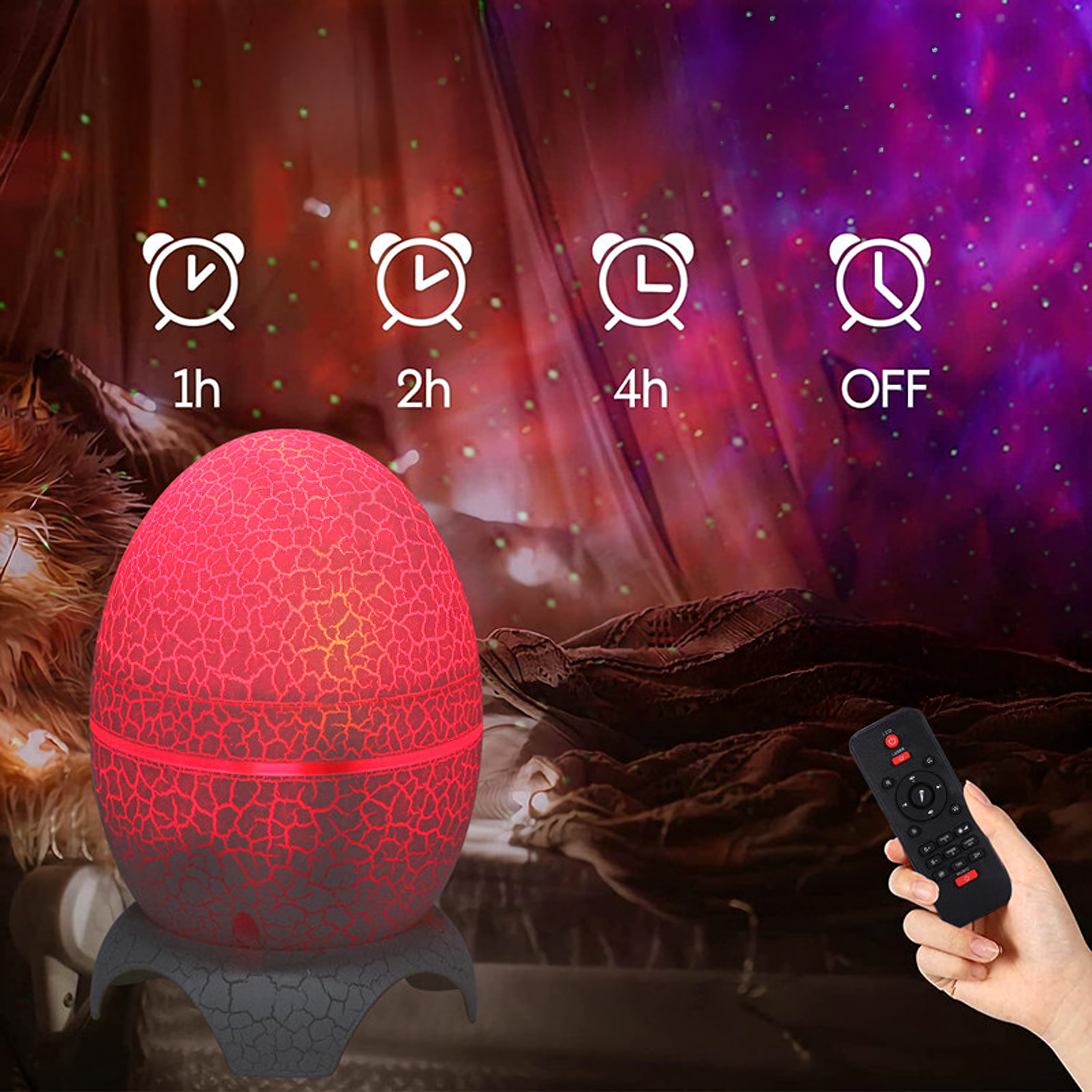 Zamień swój pokój w kolorową galaktykę z muzyką w tle! Nietuzinkowy projektor w kształcie jaja dinozaura to połączenie designerskiej lampki, projektora gwiazd i głośnika Bluetooth. To nie tylko dekoracja – to magiczna atmosfera i relaks w jednym!