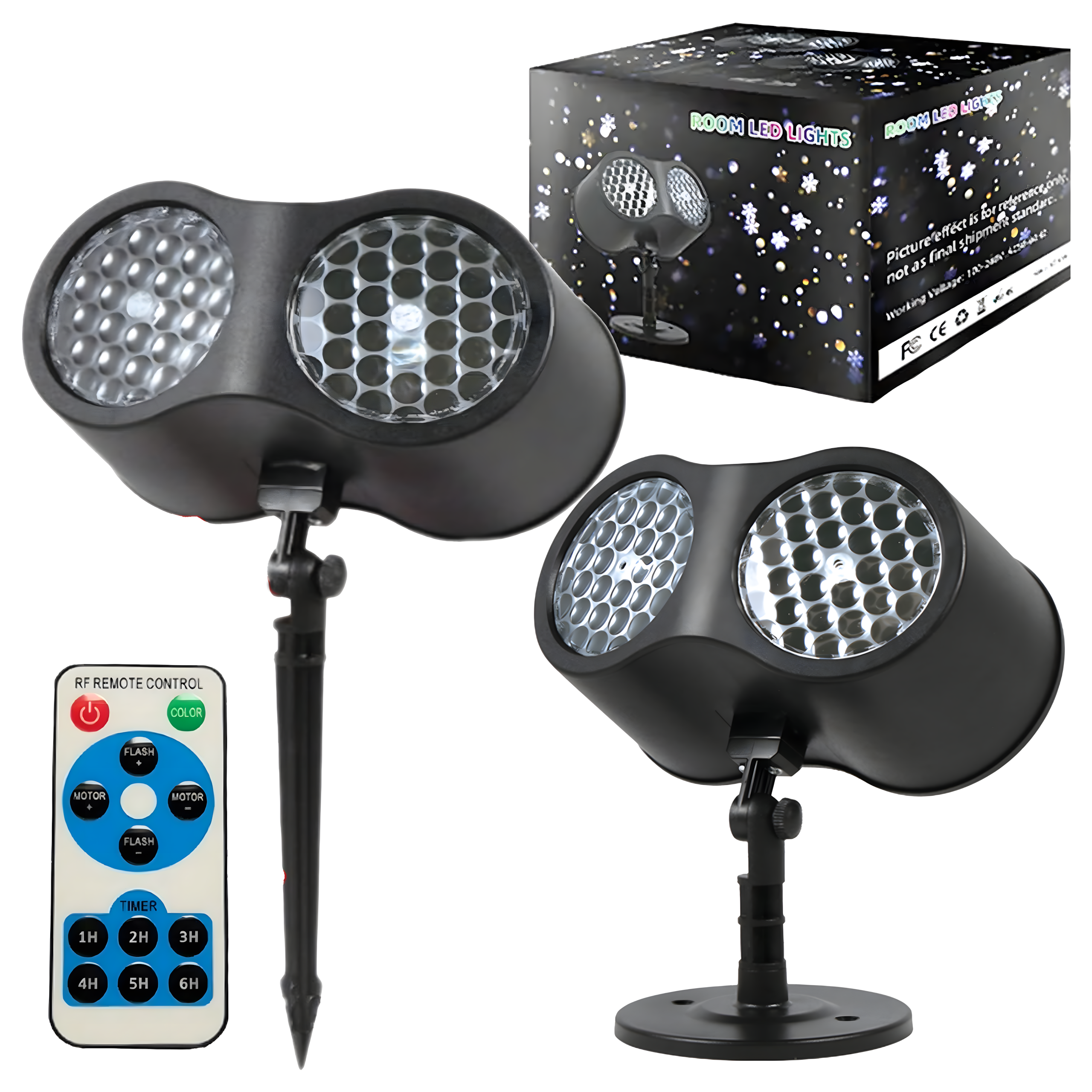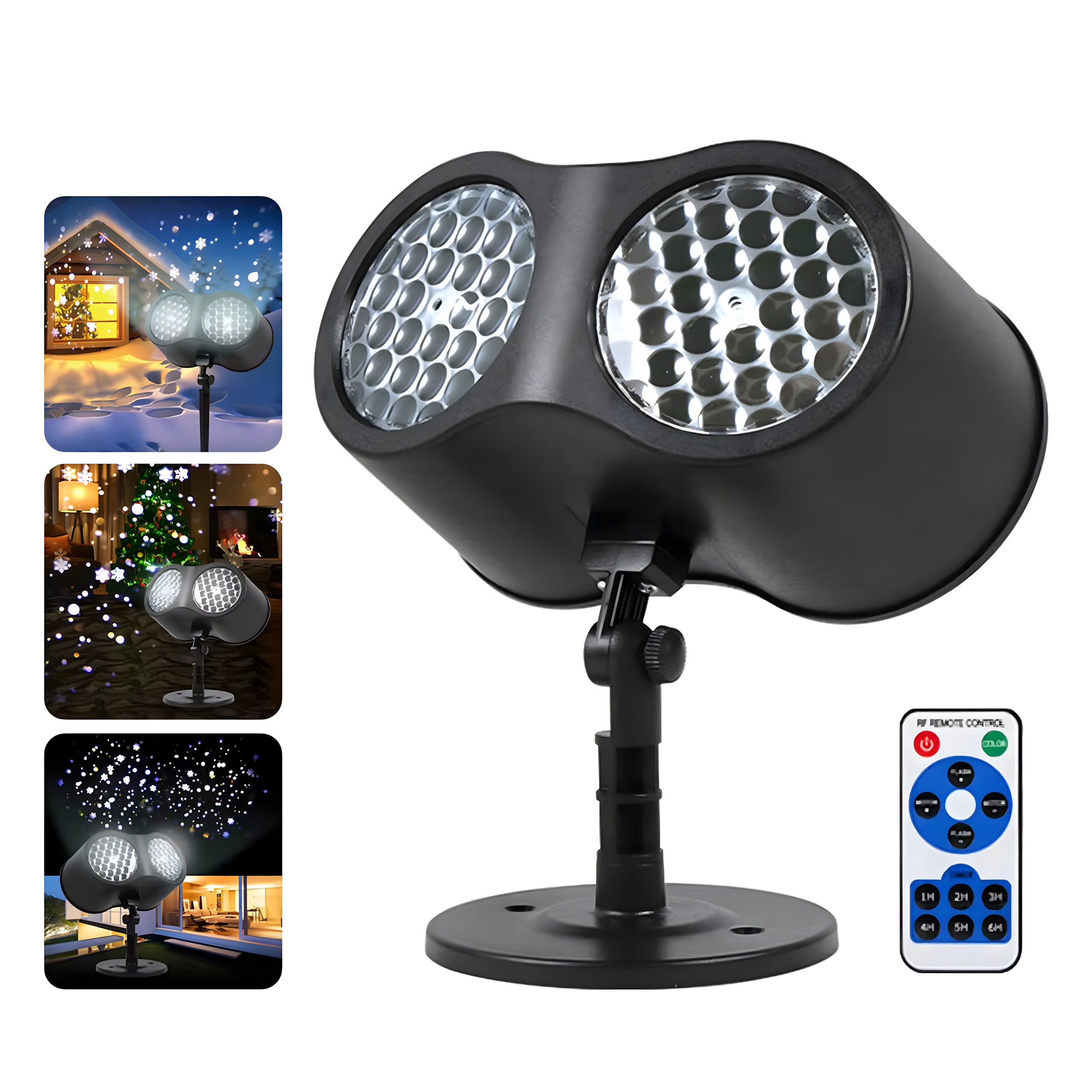 Projektor laserowy LED – reflektor świąteczny to nowoczesna dekoracja, która stworzy magiczny klimat podczas Świąt i nie tylko. Wyświetla ruchome śnieżynki i płatki, obejmując zasięgiem całą ścianę lub sufit. Dzięki odporności na deszcz, śnieg i mróz (IP65) sprawdzi się zarówno w domu, jak i na zewnątrz. Wyposażony w pilot sterujący do 25 m oraz timer (2–4–6 h), gwarantuje wygodną obsługę i pełną kontrolę nad iluminacją.