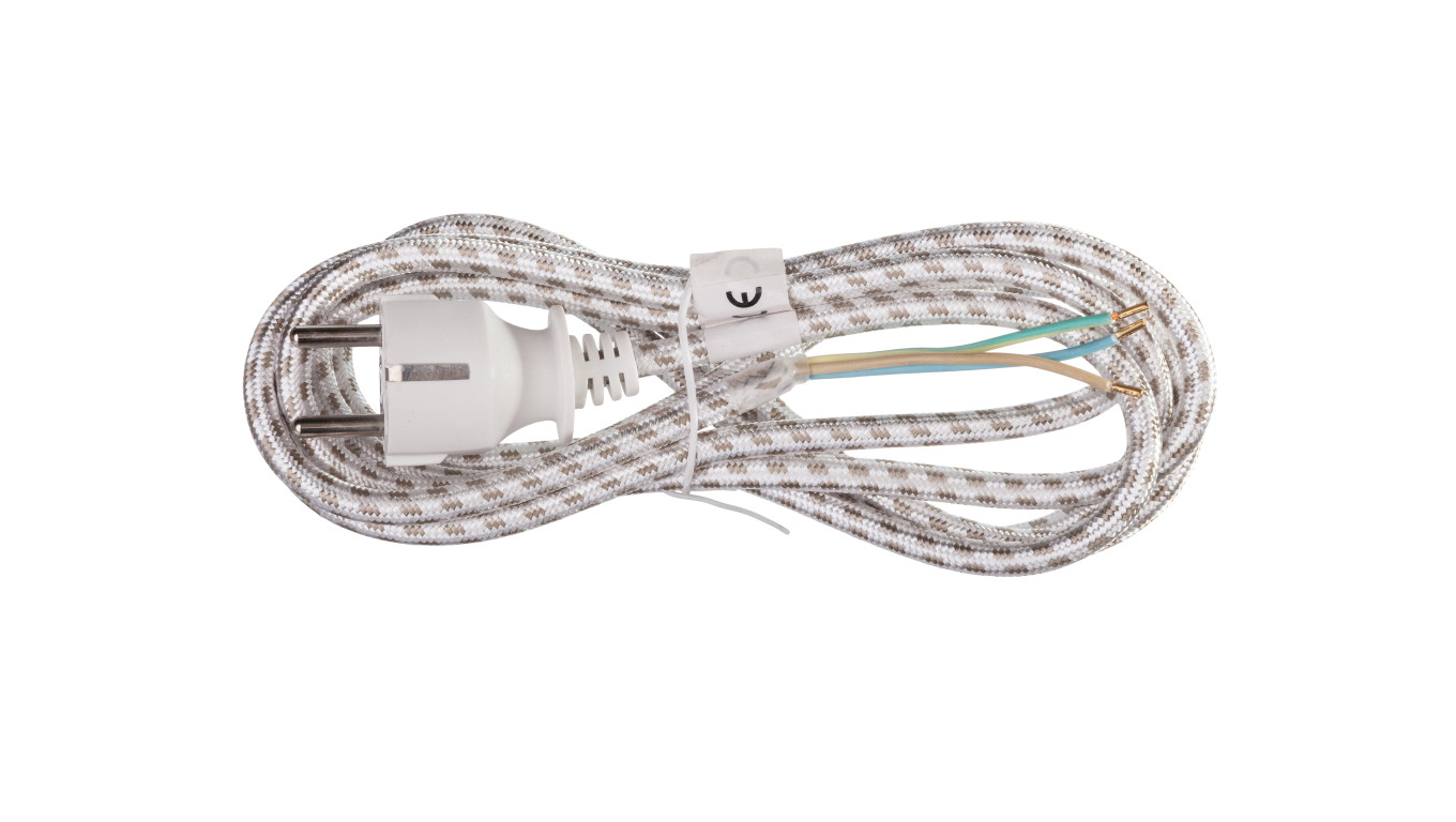 Przewód w oplocie do żelazka 3×0,75 2,4m bialo-szary S00003