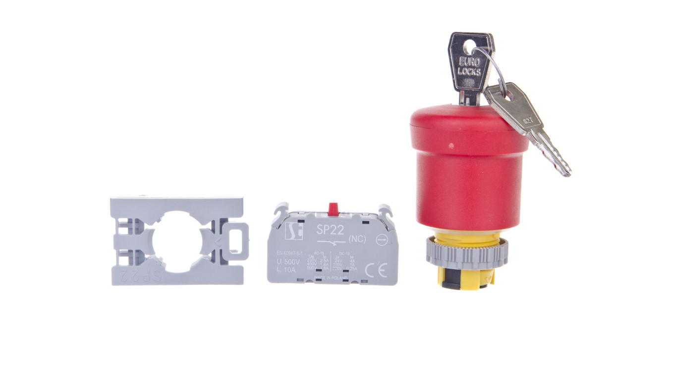 Przycisk bezbieczeństwa czerwony z kluczykiem SP22-BSN-01.