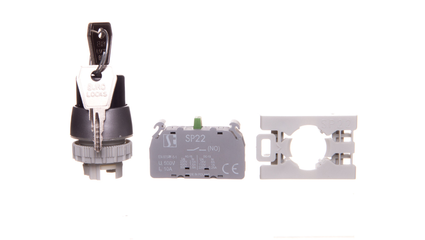 Przycisk pokrętny 2 położeniowy klucz 22mm 1Z bez samopowrotu SP22-SAV-10.