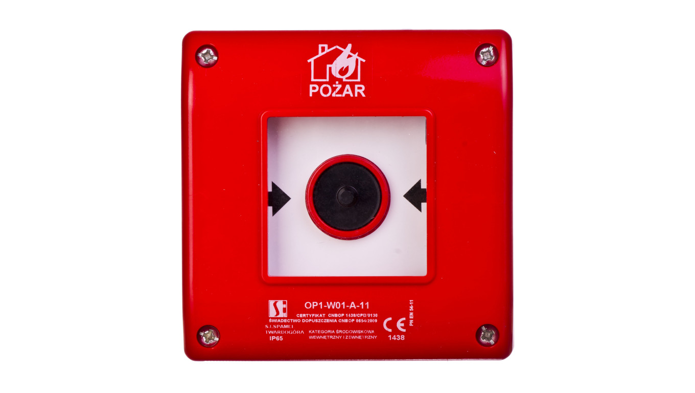 Przycisk ppoż. natynkowy 1Z 1R czerwony zwalniany samoczynnie bez sygnalizacji OP1-W01-A11