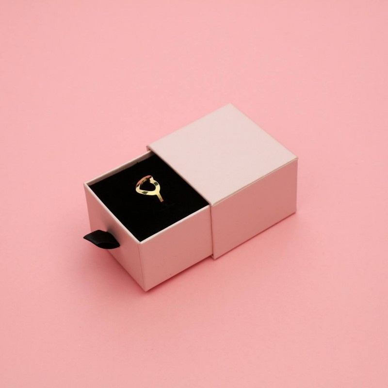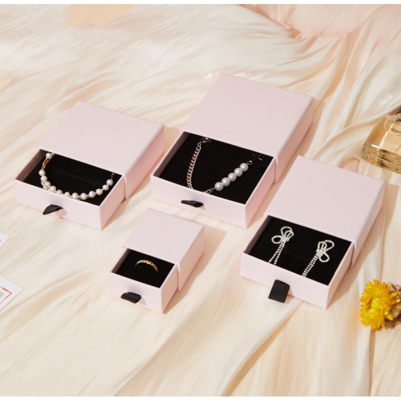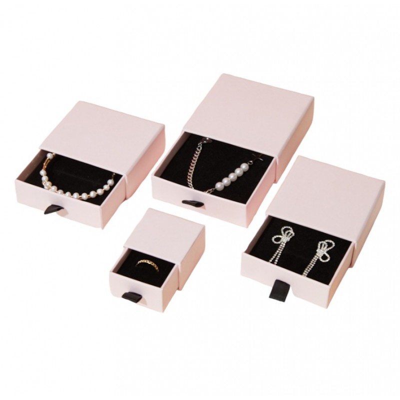 Eleganckie pudełeczko ozdobne – prezentowe na biżuterię W środku poduszeczka w kolorze czarnym.