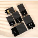 Eleganckie pudełeczko ozdobne – prezentowe na biżuterię W środku poduszeczka w kolorze czarnym.