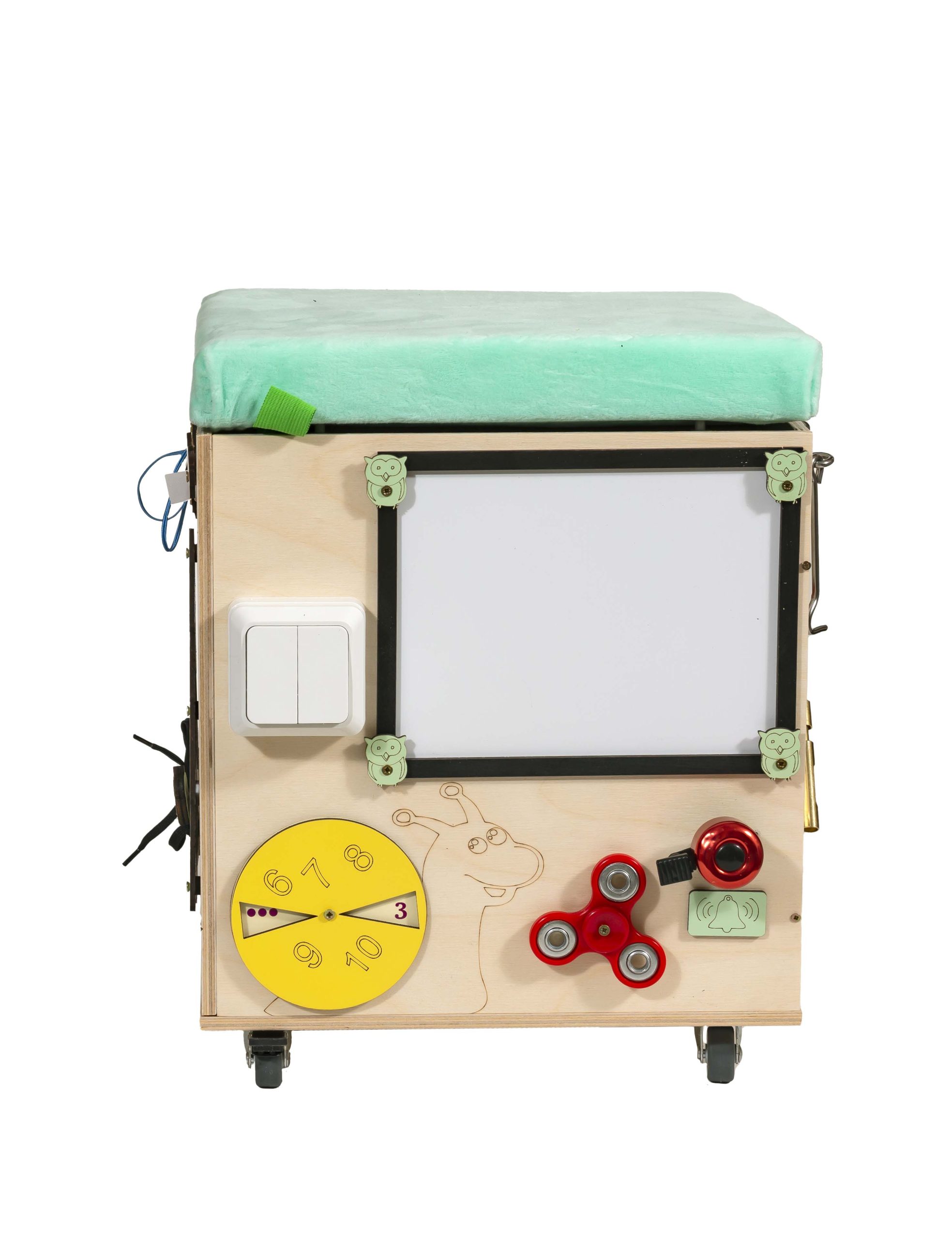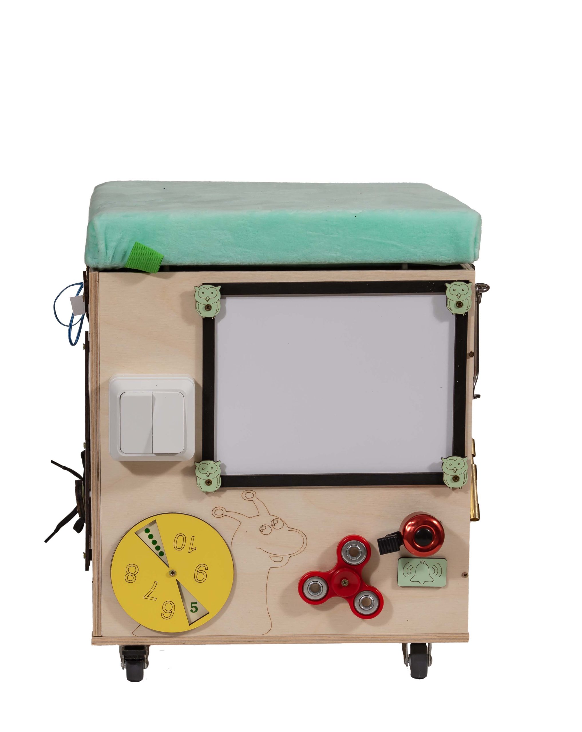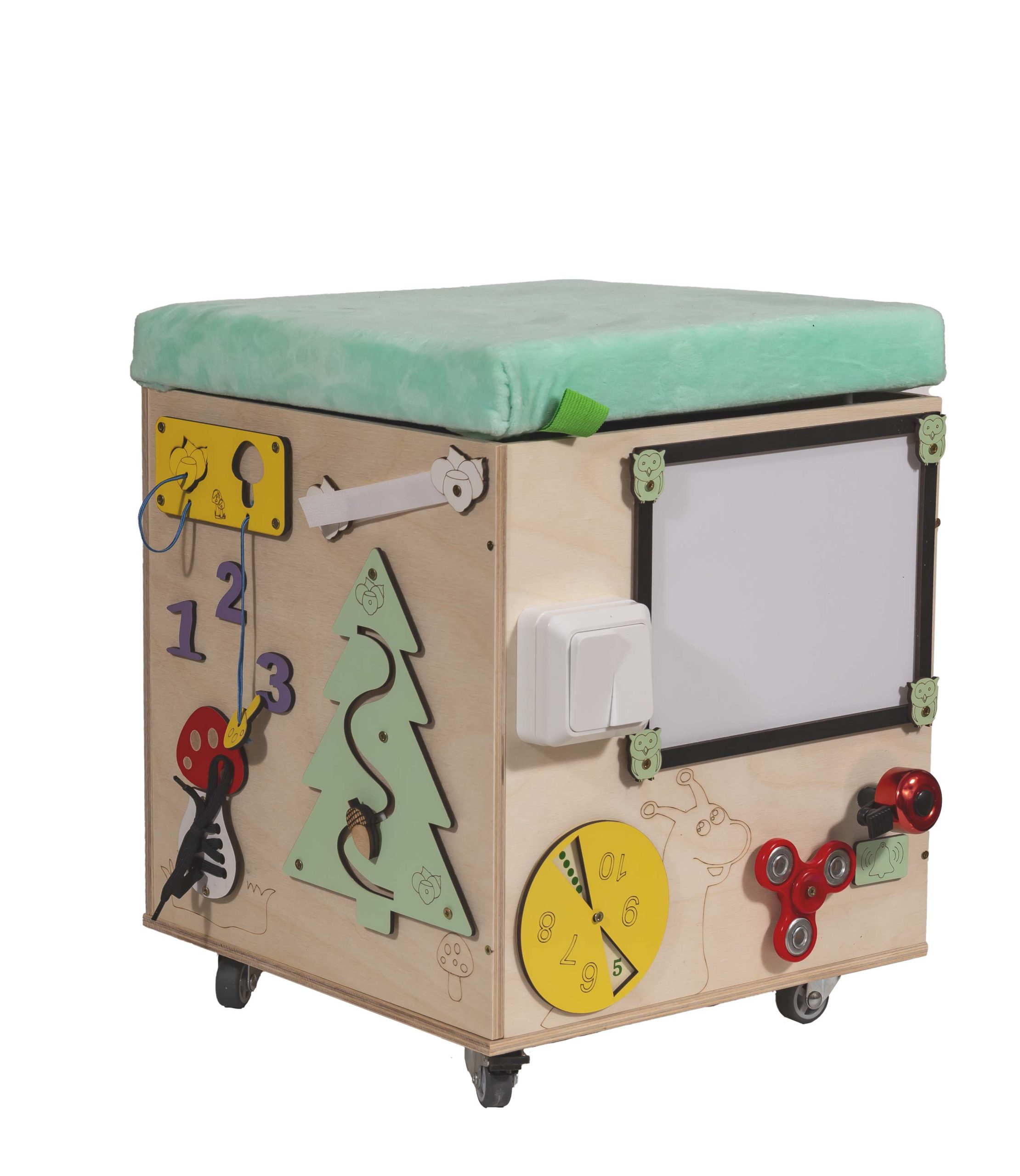 Pufa ze schowkiem dla dzieci kostka manipulacyjna