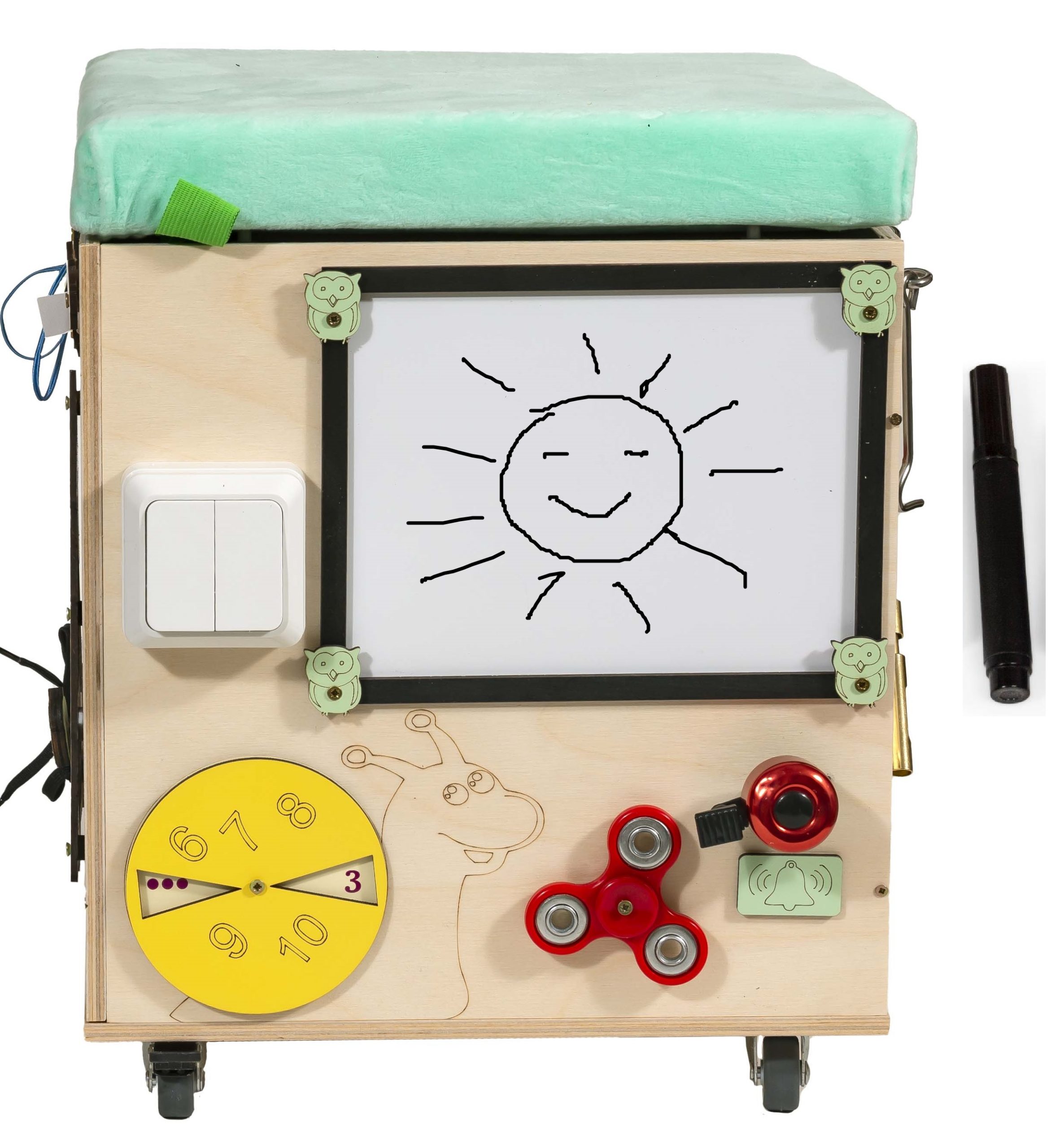Pufa manipulacyjna z siedziskiem i kółeczkami jest idealnym rozwiązaniem dla każdego rodzica. Produkt zadba o prawidłowy rozwój dziecka, a jednoczęsnie pomieści ulubione zabawki malucha.Wym. prod. 31x31x40,5cm