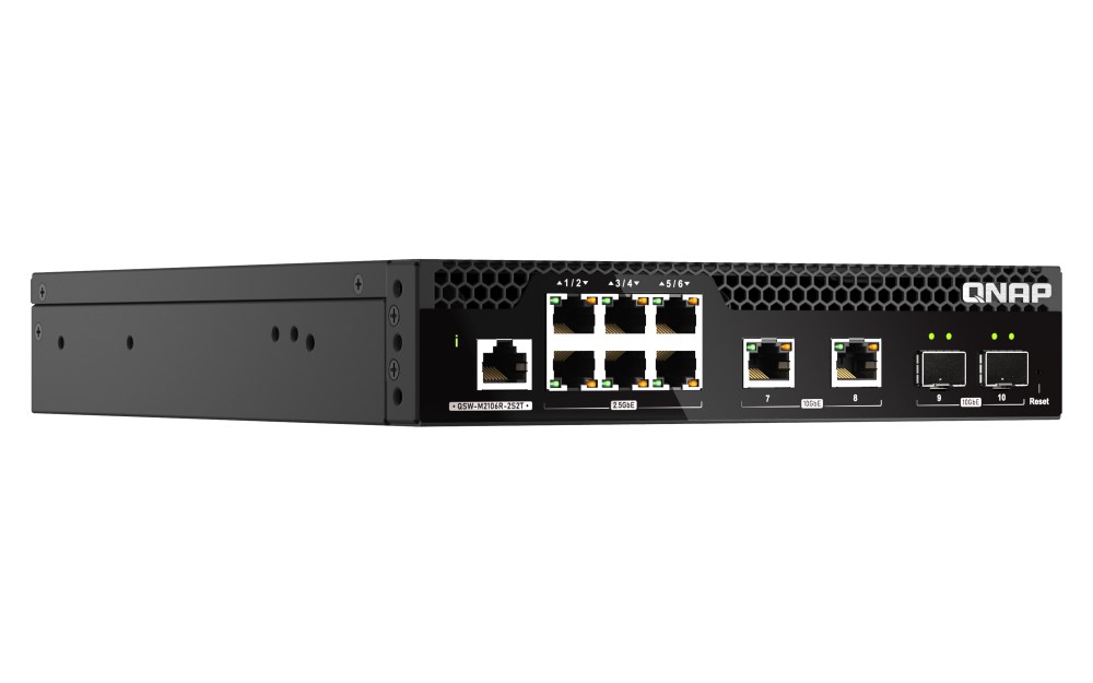 Qnap QSW-M2106R-2S2T, 6 port 2.5Gbps, 2 ports 10GbE SFP+, 2 ports 10GbE RJ45 , managed switch, half-rackmount design