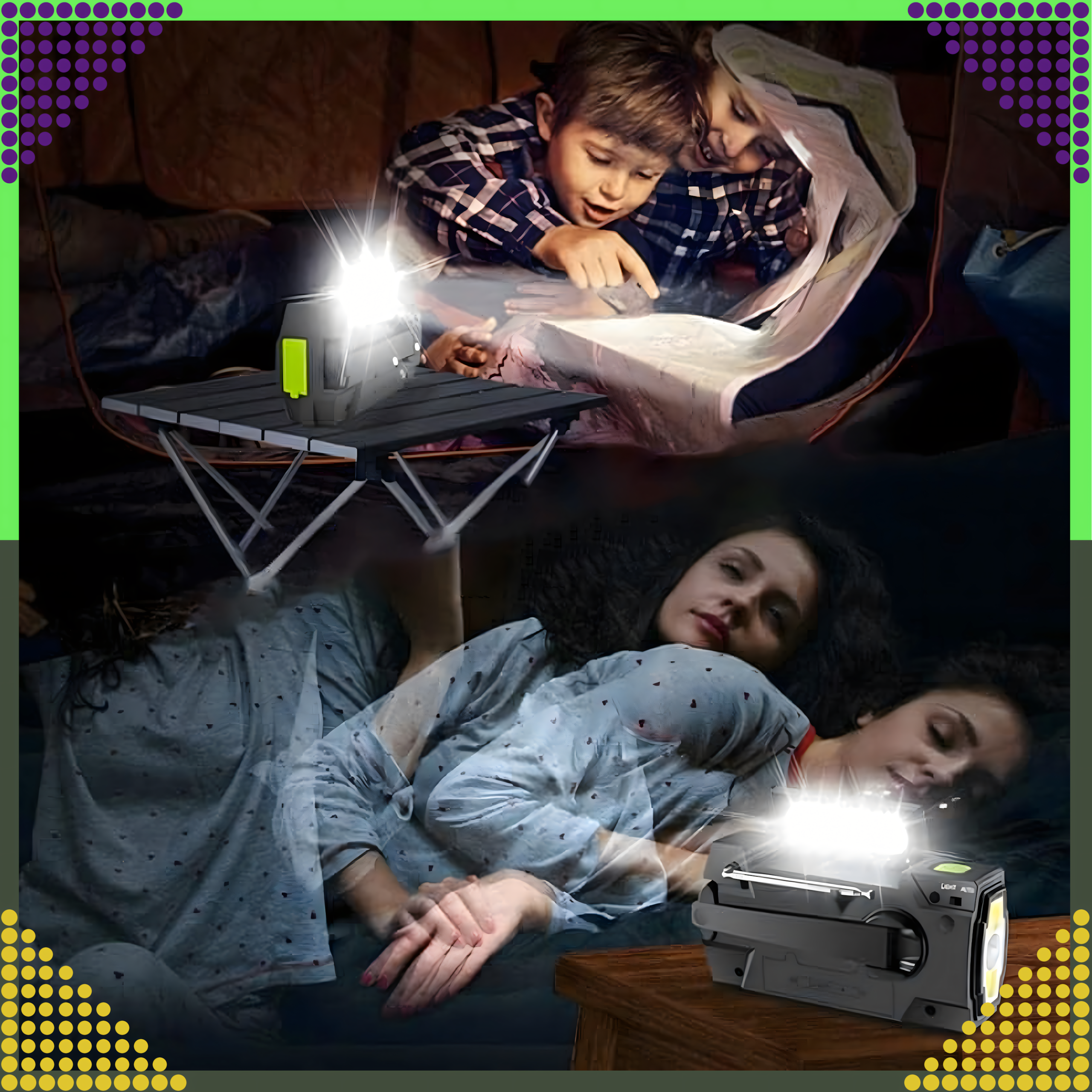 ✔️ Wbudowane radio AM/FM/NOAA – zapewnia dostęp do informacji pogodowych i komunikatów w przypadku przerw w dostawie prądu lub nagłych zdarzeń.