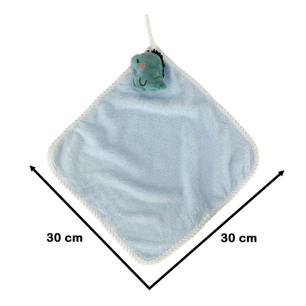 Malutki ręcznik dla dzieci do rąk – w niebieskim kolorze i z uroczym dinozaurem. Posiada pętelkę do zawieszenia. Jest niezwykle mięciutki i przyjemny w kontakcie ze skórą. Tworzywo: poliester, nylon. Wymiary: 30 cm x 30 cm.