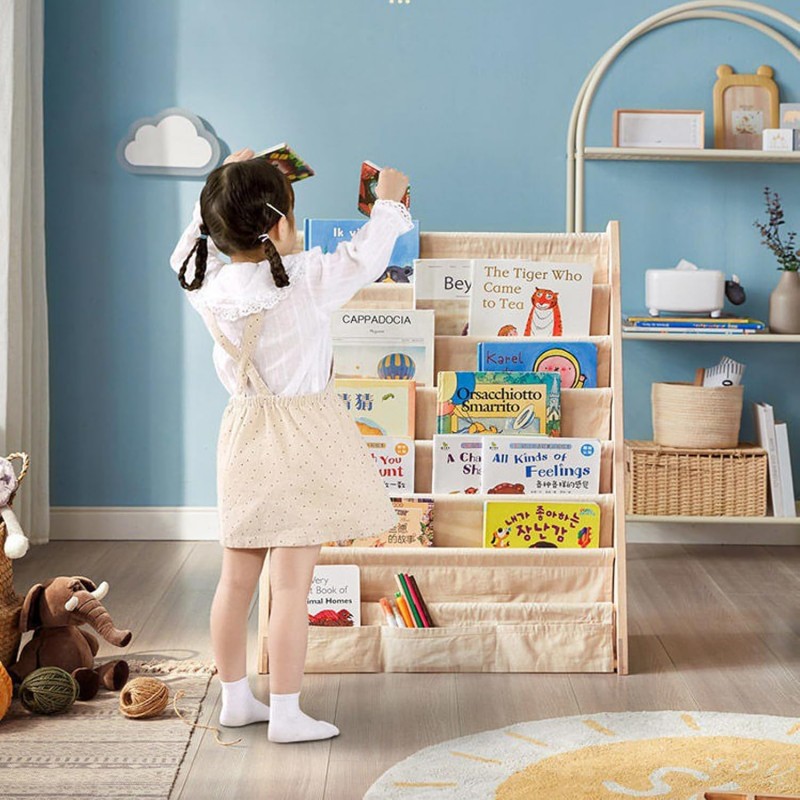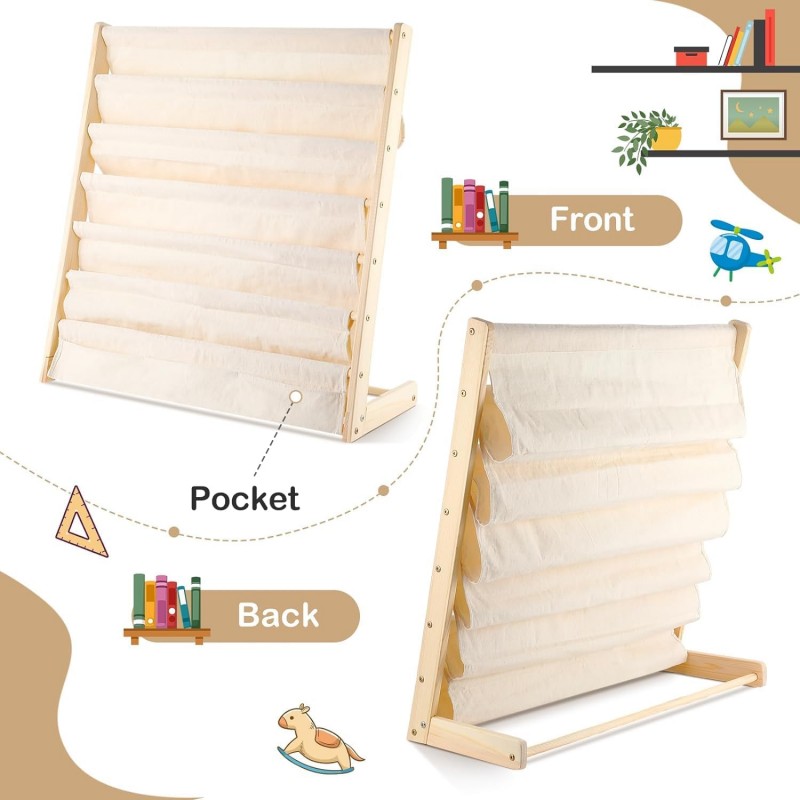 Regał, 6 poziomowy stojak, organizer na książki z kieszonkami 79 x 60 cm SZ45