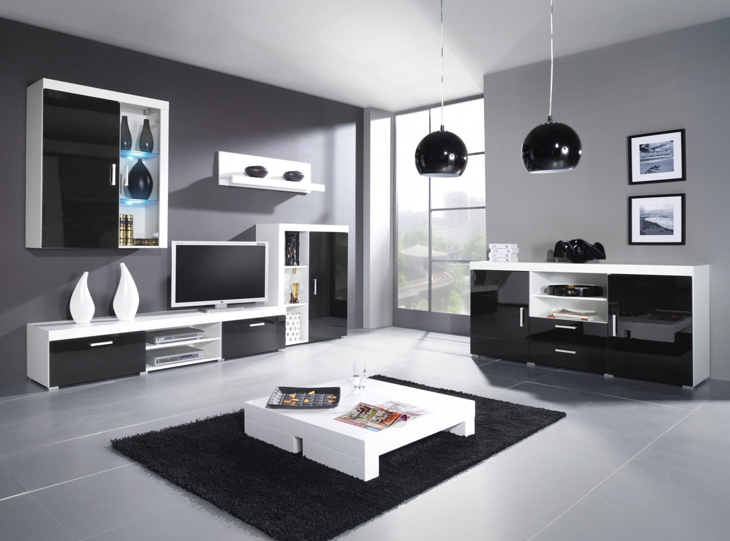 Regał SAMBA (Unit 3) biały/czarny połysk