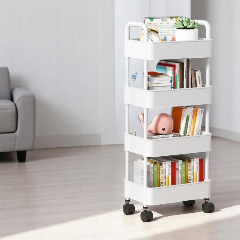 Regał, szafka mobilna na kółkach 4 poziomy biała 36x24x84cm SZ41B