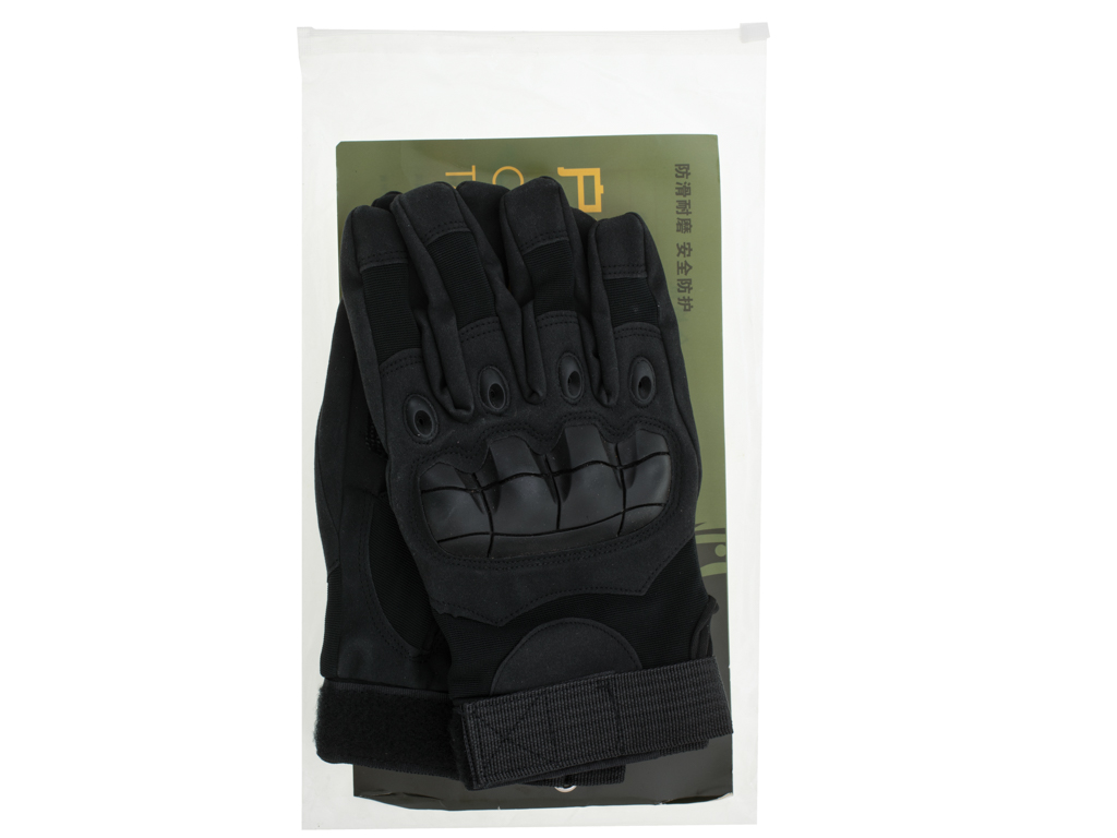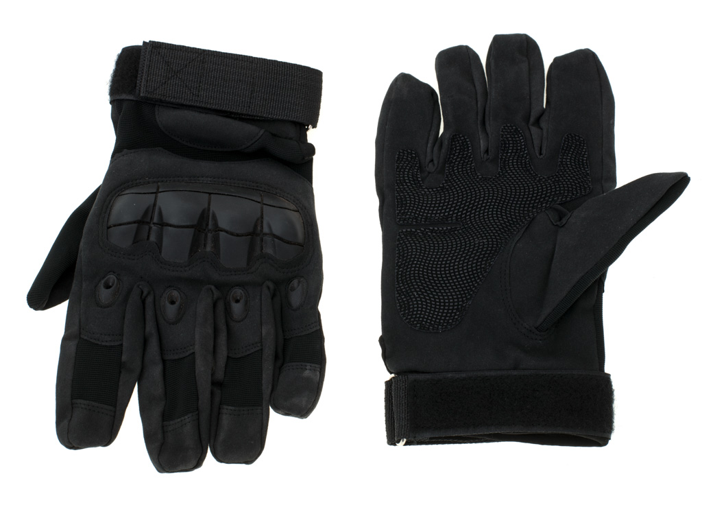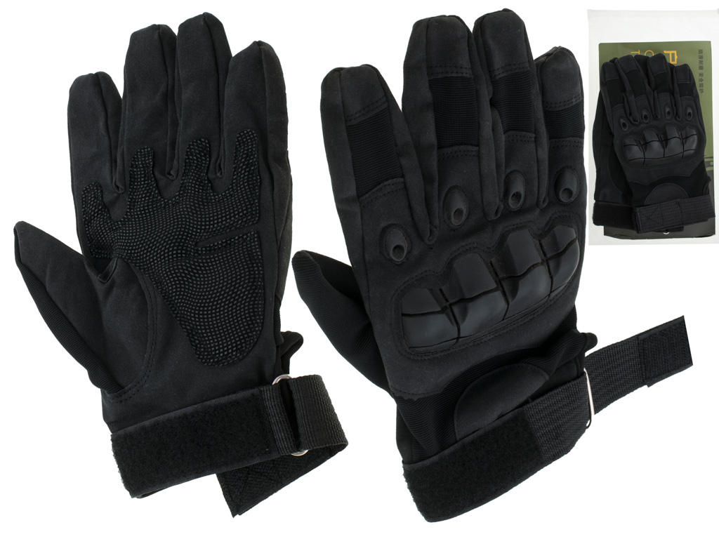 Czarne rękawice taktyczne chroniące kostki. Idealne nawet na najbardziej wymagające wyprawy. Dodatkowe wzmocnienia i warstwy materiału w najbardziej wrażliwych miejscach. Tworzywo: imitacja mikrofibry. Rozmiar: L. Długość: 22cm. Szerokość: 11.5cm.