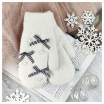 Rękawiczki posiadają delikatne zdobienia z kokardek