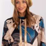 Eleganckie rękawiczki damskie z gładkiego materiału z kontrastowymi wstawkami między palcami. Przy nadgarstkach ozdobne kontrastowe plecione paski. Kciuk oraz palec wskazujący z haftowanym kwiatkiem, umożliwiający obsługę telefonu, bez potrzeby ściągania rękawiczek.