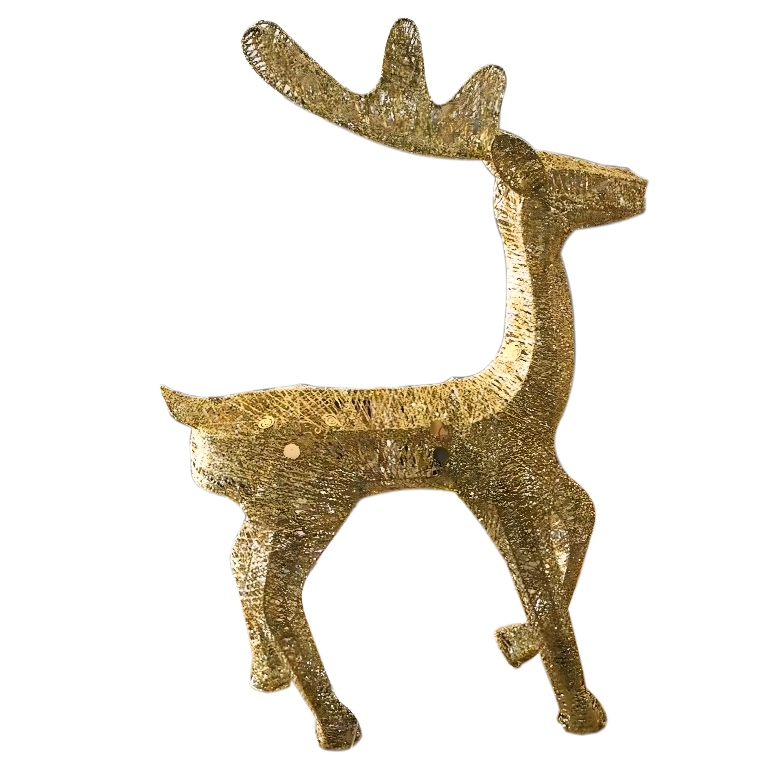 Renifer LED 70 cm w złotym wykończeniu to elegancka i efektowna dekoracja świąteczna, która stanie się centralnym punktem Twoich zimowych aranżacji. Dzięki ciepłemu światłu LED wprowadza do wnętrza magiczny nastrój, rozświetlając święta i dodając im blasku. Idealny do salonu, pod choinkę czy przy kominek.