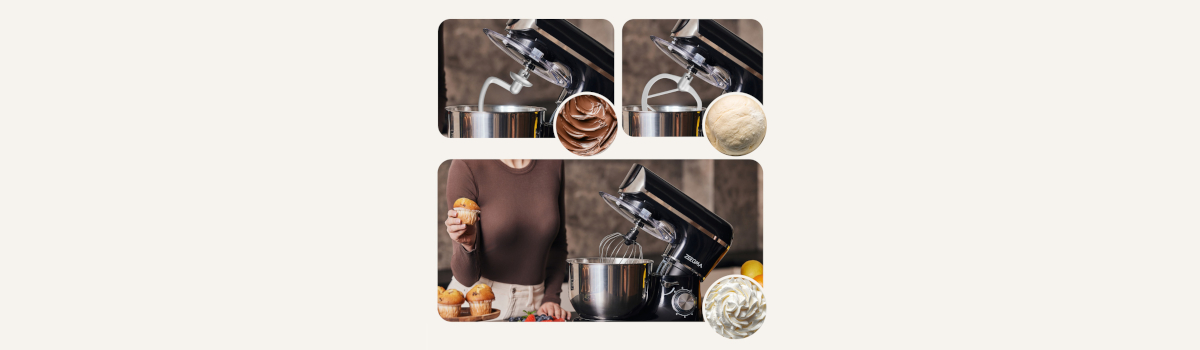- Mieszadło – doskonałe do mieszania masy, ucierania ciasta i innych zadań.