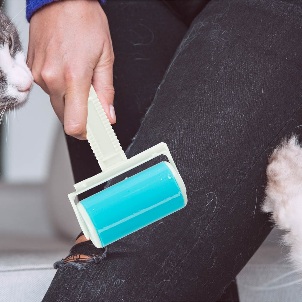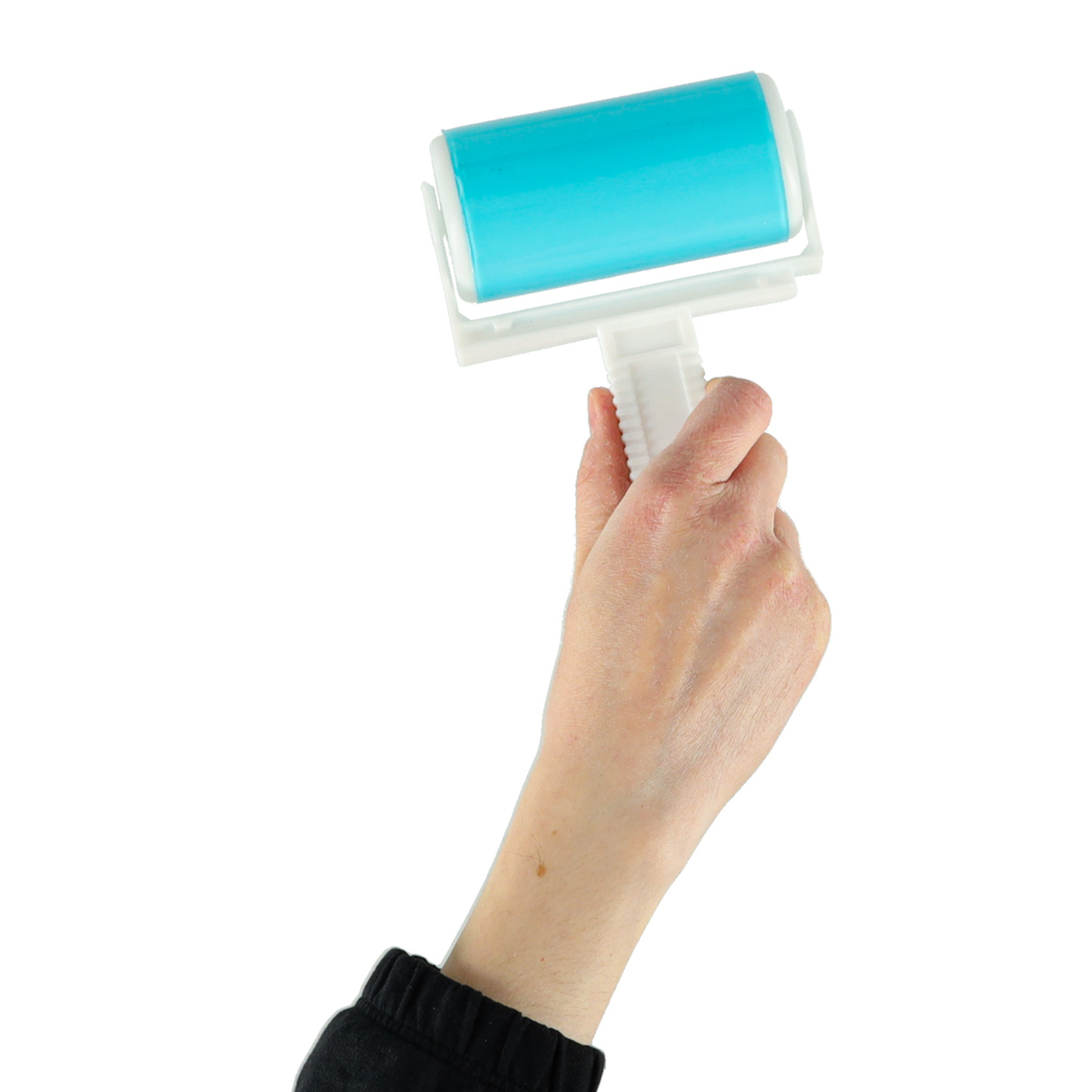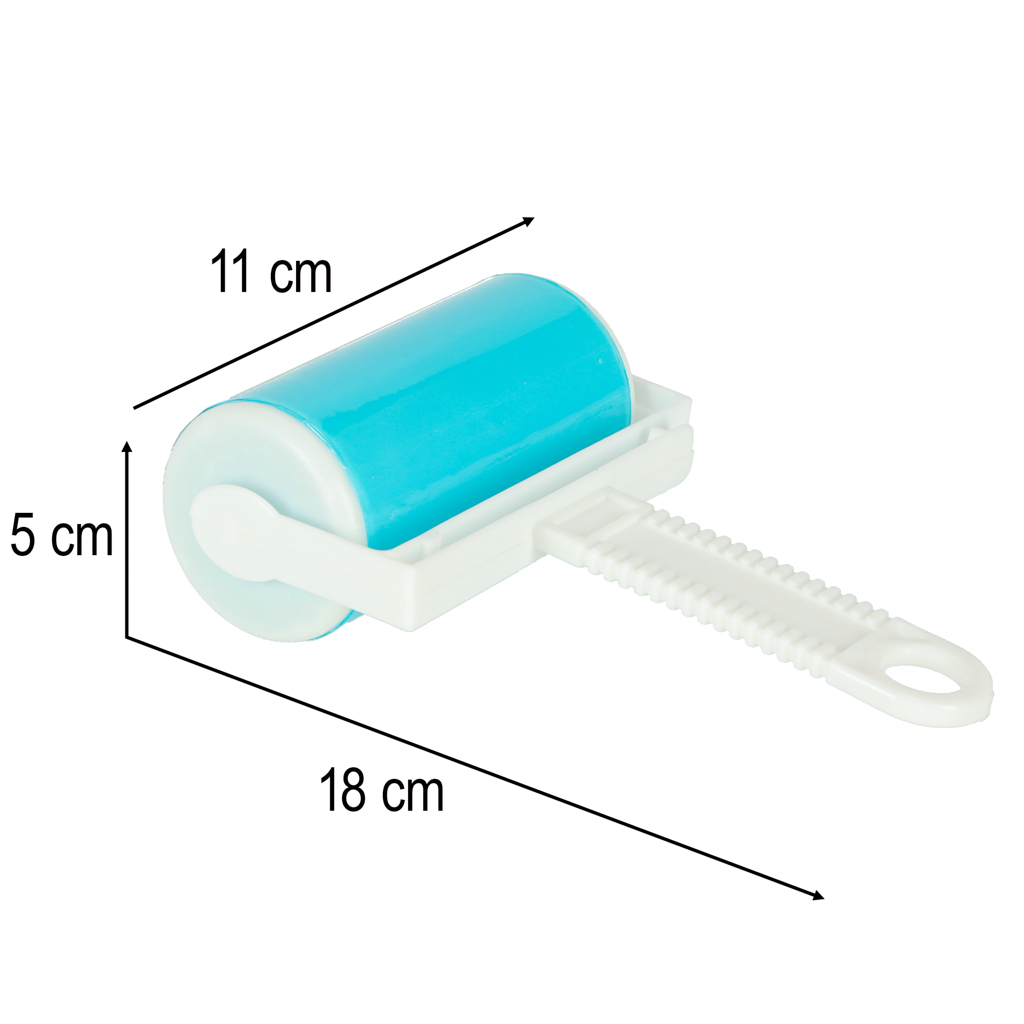 Wałek do czyszczenia tapicerki lub ubrań. Żelowa nawierzchnia rolki zbierze wszelkie paprochy i sierść, a praktyczny uchwyt zapewni wygodę korzystania. Produkt wielokrotnego użytku. Tworzywo: plastik i silikon. Wymiary produktu: 18x11x5cm.