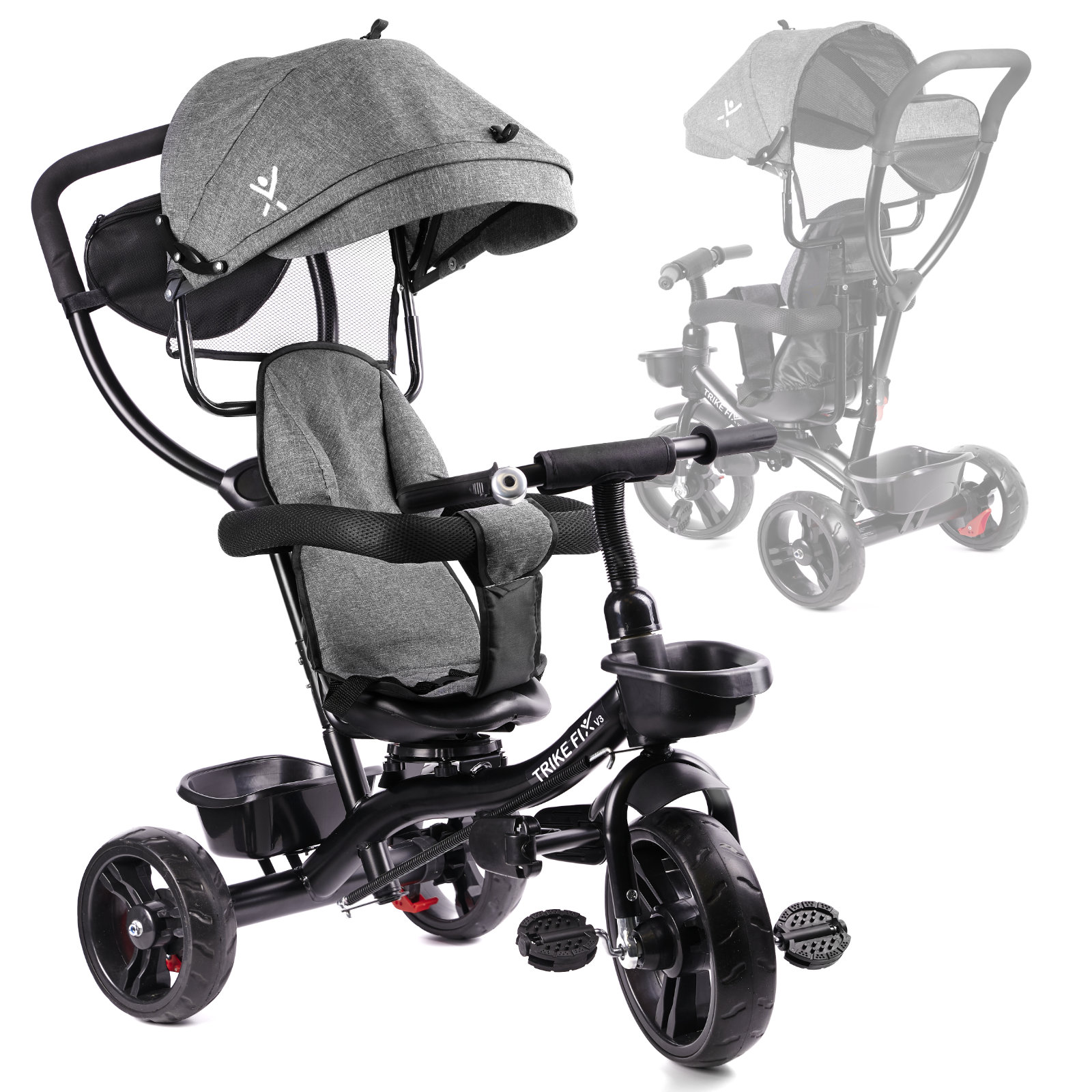 Rowerek trójkołowy Trike Fix Lite rower spacerówka 3w1 obracany 360 wolne koło szary