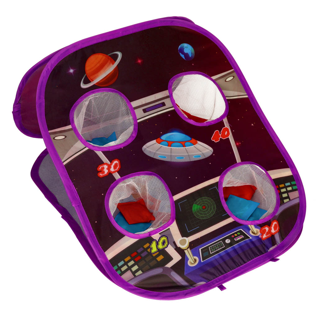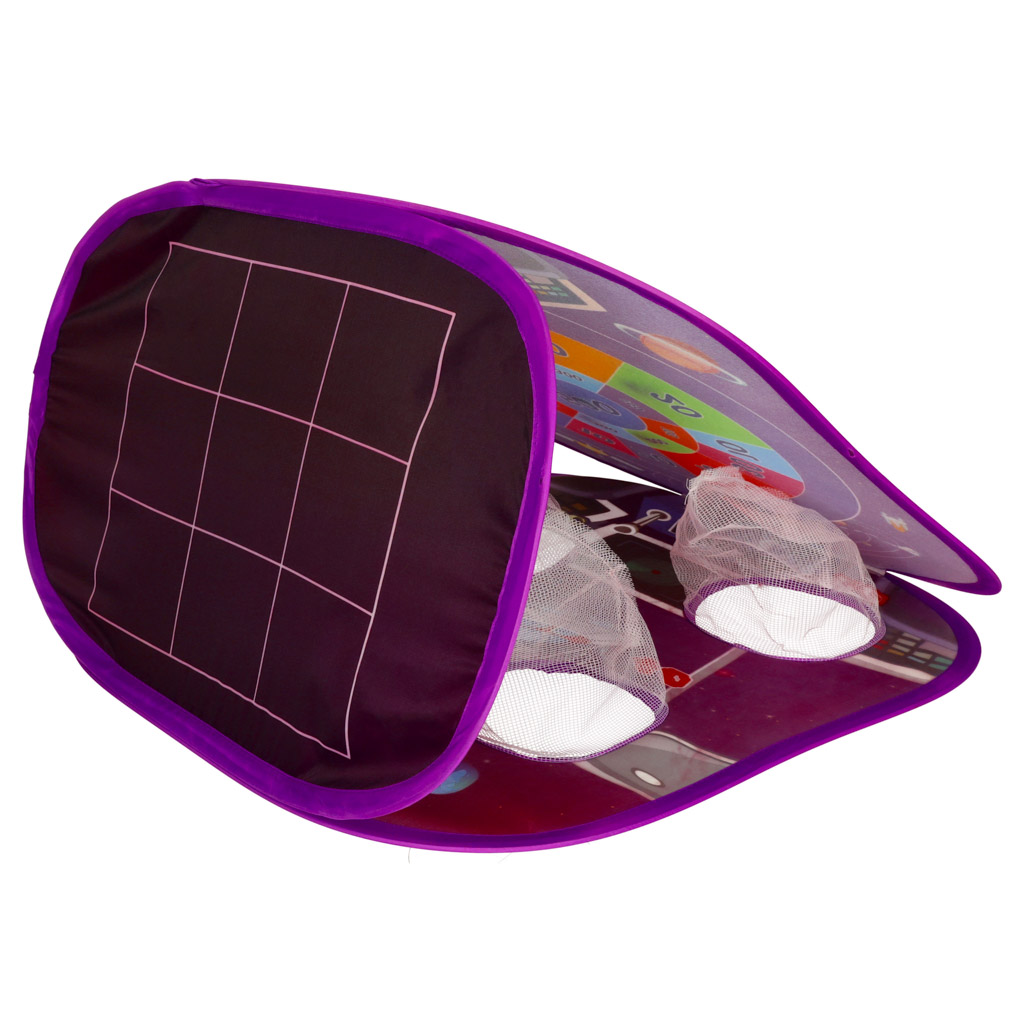 Gra zręcznościowa 2w1 – rzucanie rzutkami i woreczkami. Fantastyczna zabawa dająca mnóstwo frajdy oraz rozwijająca umiejętności manualne dzieci, jak i dorosłych – wspólna zabawa jest jak najbardziej wskazana. Wiek: 3+. Wym. tarczy: 58 cm x 49 cm x 33 cm.