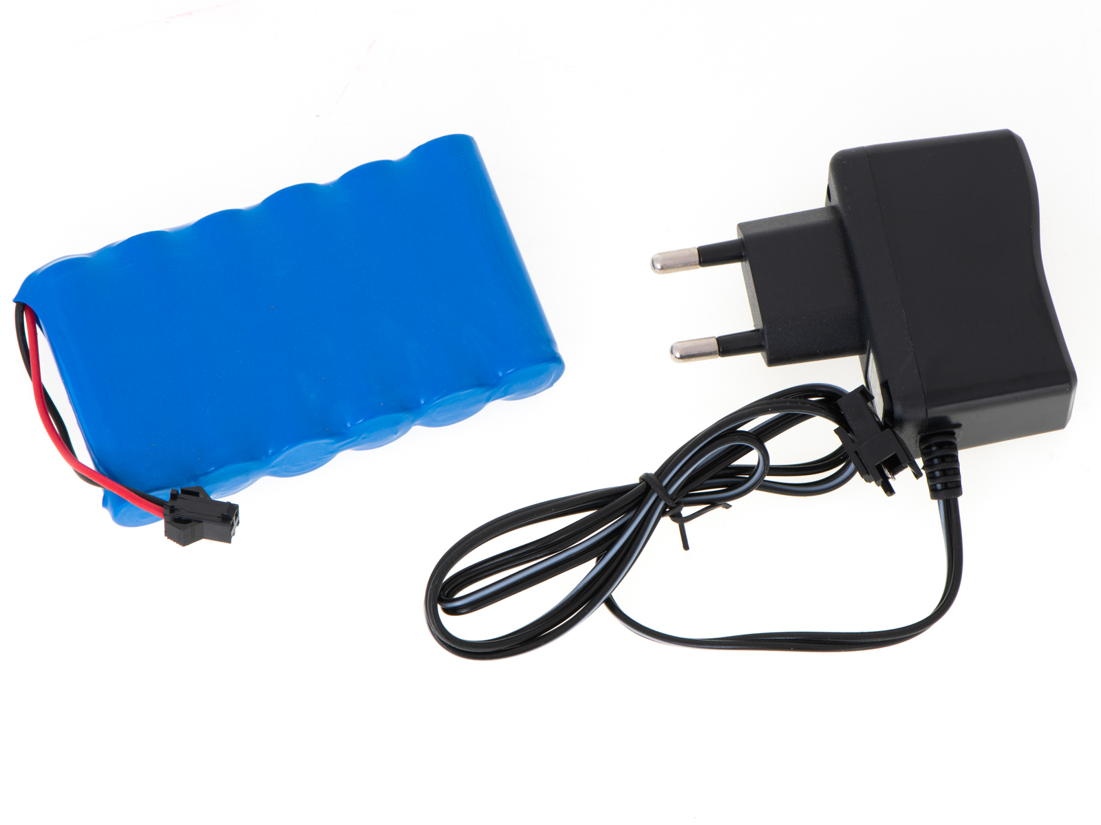 Odległość kontroli pojazdu: Około 50 m, Czas ładowania: 3 godziny, Pojemność baterii: 2000 mah, Czas działania: Około 15-20 minut,Akumulator 7,2V Ni-Cd 2000mAh, Kontroler: 2 x 1.5V AA (brak w zestawie)